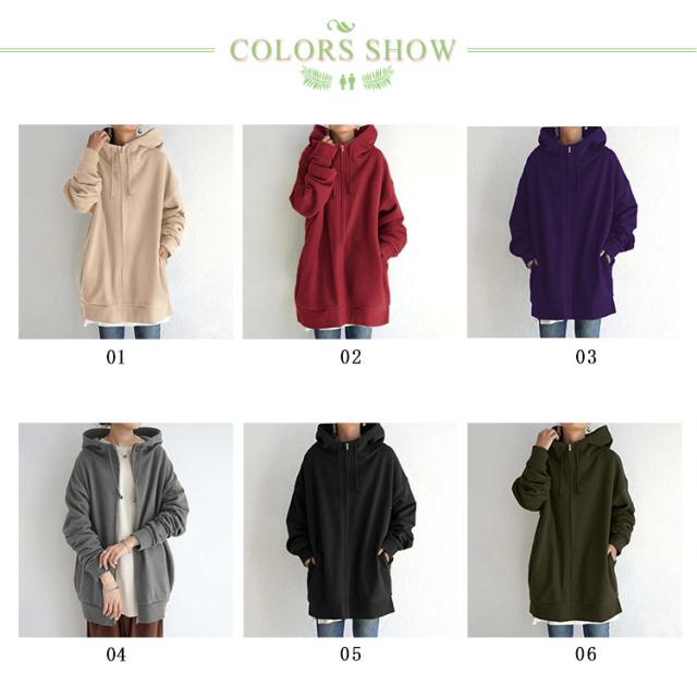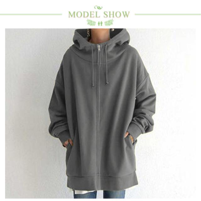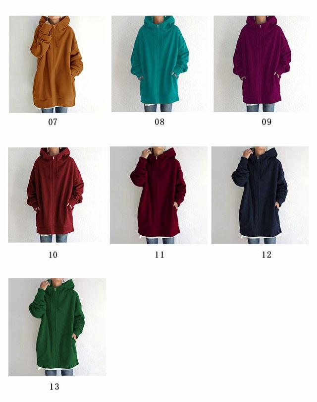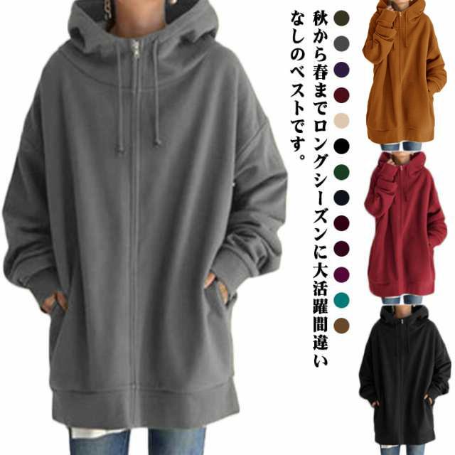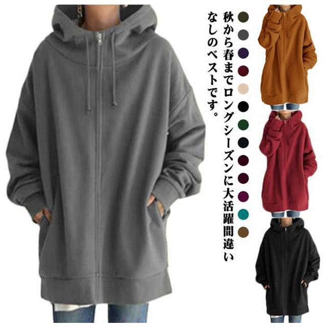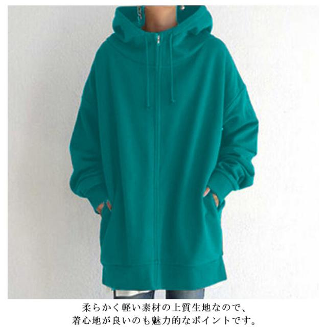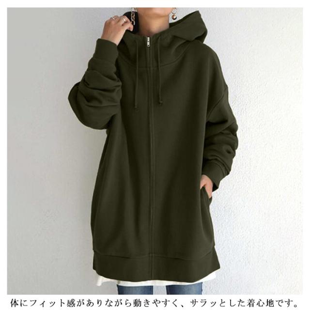 パーカー レディース スウェット フード付き ハイネック ロングパーカー 無地 裏起毛 ロングカーディガントップス 秋 冬 ロング丈 ボリュームネック 体型カバー 送料無料 大きめ 着痩せ 大きいサイズ 防寒 あったか ゆったり