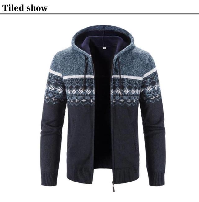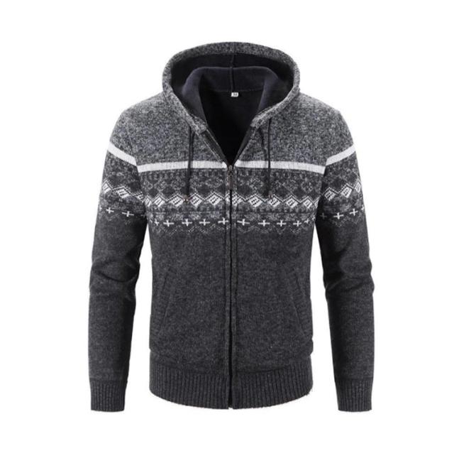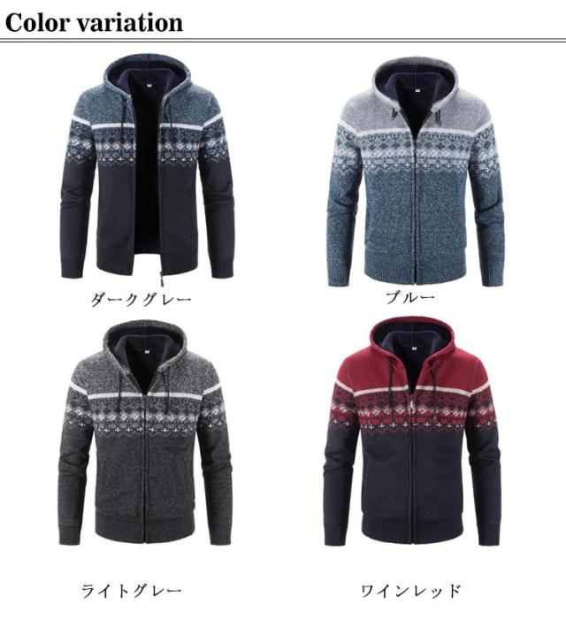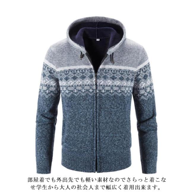 パーカー メンズ 大きいサイズ ニットパーカー 暖かい 裏起毛 フリース 秋服 オルテガ柄 メンズ ニット パーカー あったか フード付き ジップアップ セーター カーディガン 秋 冬 スウェット 裹起毛 トップス 長袖 アウター ジップアップ 大人 おしゃれ