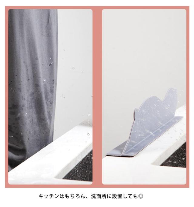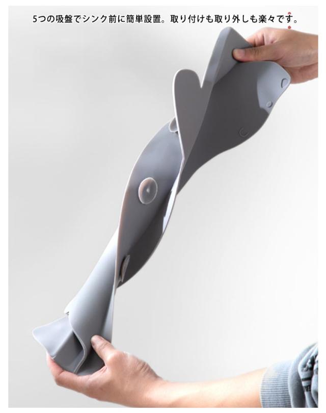 | シリコン素材でやわらかく、手が当たっても痛くない安全な素材。 煮沸消毒や食器用洗浄機での洗浄も可能で、スポンジで優しく洗うだけで汚れが落ちるのでお手入れが簡単です。 5つの吸盤でシンク前に簡単設置。取り付けも取り外しも楽々です。 キッチンはもちろん、洗面所に設置しても◎ かわいいフォルムで水回りのインテリアとしても一役買ってくれる便利アイテムです。 | |