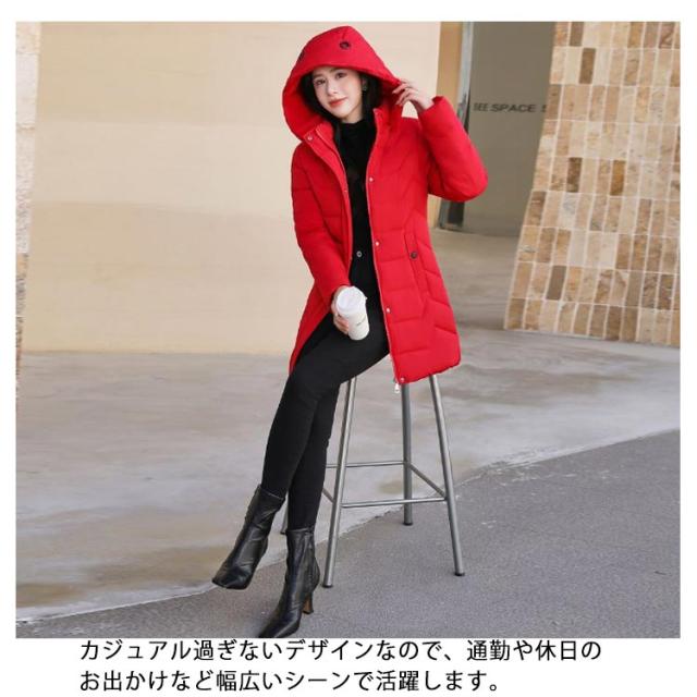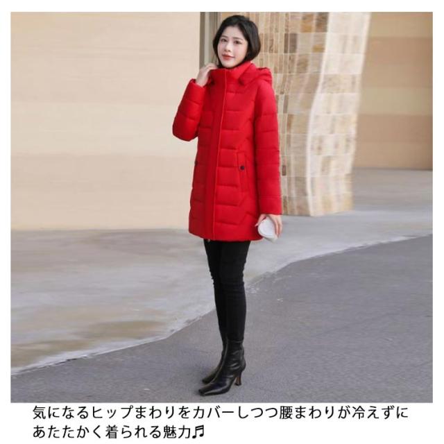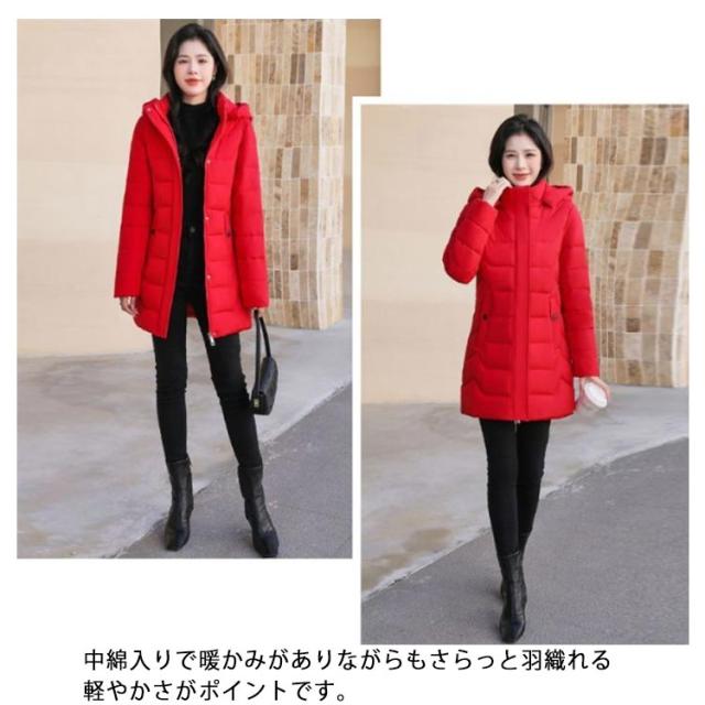 中綿 コート レディース ダウンコート ミドル丈 スリム フード付き 軽量 防寒コート 秋冬 アウター ロングコート 冬コート 防寒 保温 あたっか 無地 細身 着?せ きれいめ 大人 カジュアル 30代 40代 50代 大きいサイズ おしゃれ 【送無】