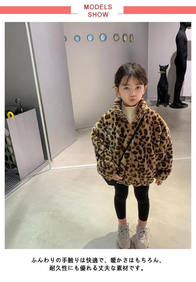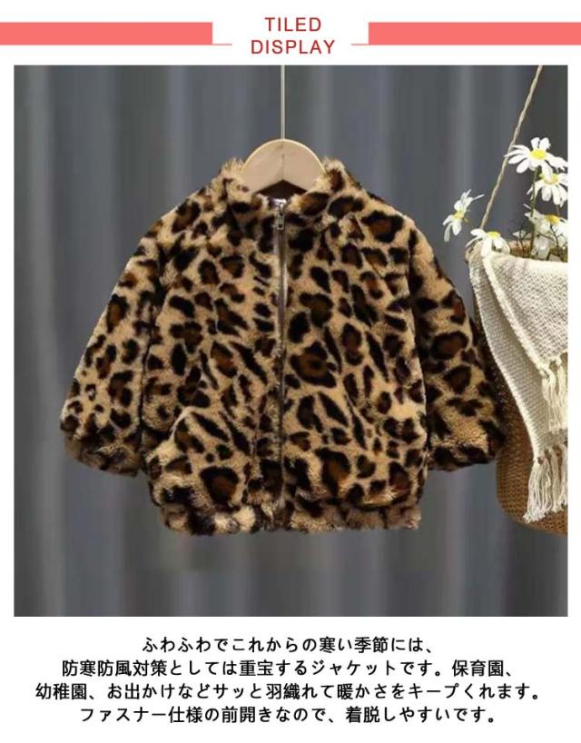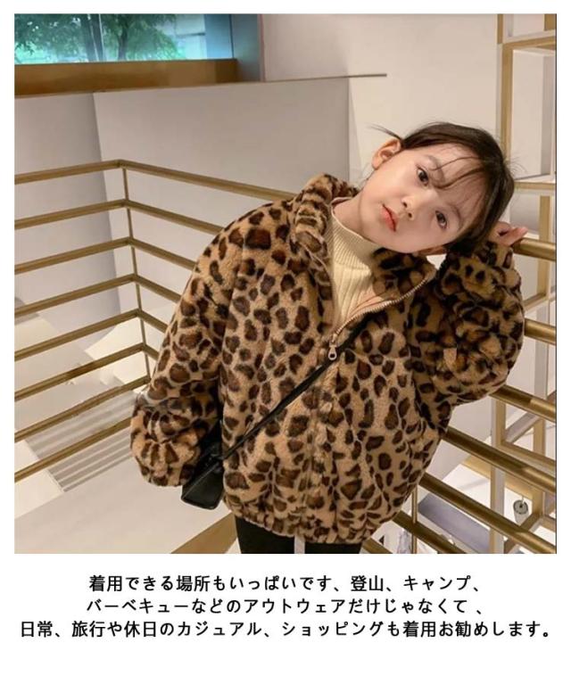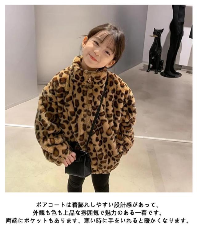 ボアコート キッズ ブルゾン ジャケット 子供服 おしゃれ ボアブルゾン 立ち襟 ボア もこもこ ミドル丈 防寒 シンプル 女の子 男の子 上着 ベビー アウター ジュニア トップス コート 軽量 防寒 暖かい 冬 通園 通学 ヒョウ柄