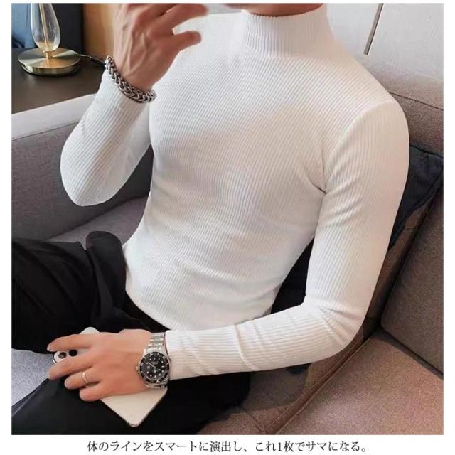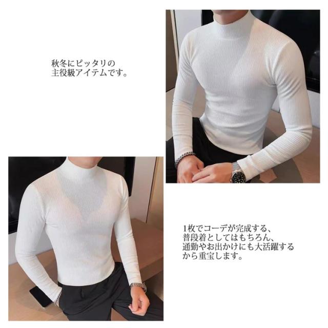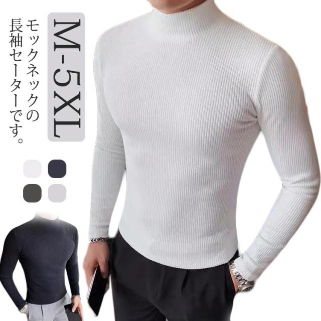 モックネック ニット モックネックセーター メンズ ニットセーター ニットトップス 長袖 インナー ニットソー ハイネック シンプル おしゃれ カジュアル 細身 無地 暖かい M L XL 2XL 3XL 4XL 5XL