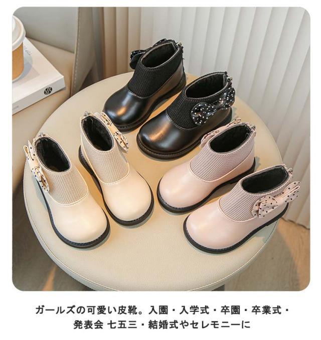 | ガールズの可愛い皮靴。入園・入学式・卒園・卒業式・発表会 七五三・結婚式やセレモニーに 裏ボアでしっかりと防寒対策!本革のようなシワ感のある高級合成素材を使用します。 クッション性に優れ、履き心地が快適!耐磨耗性の高いソール、走りやすい!足の負担を軽減、着地時の衝撃を緩和。足全体にフィット! 七五三やフォーマルなシーン、正式の場でも、普段でも! | |