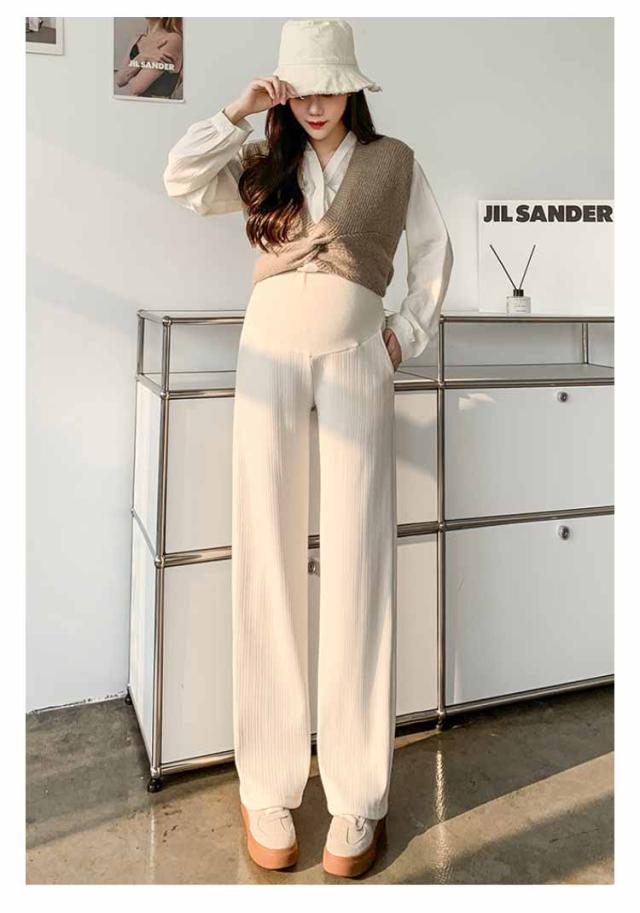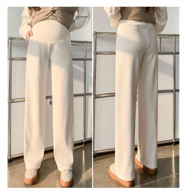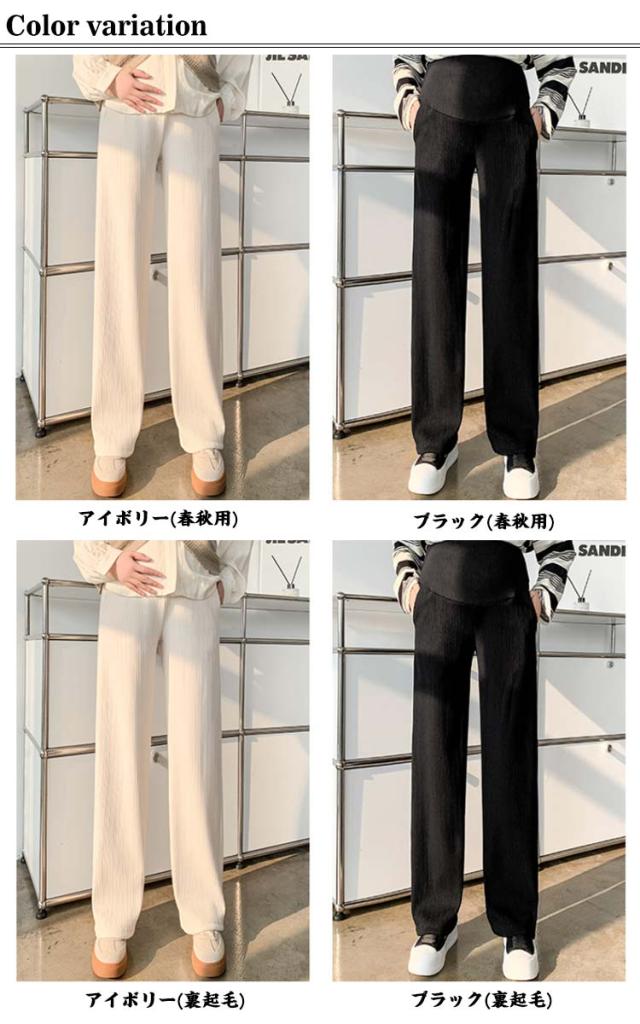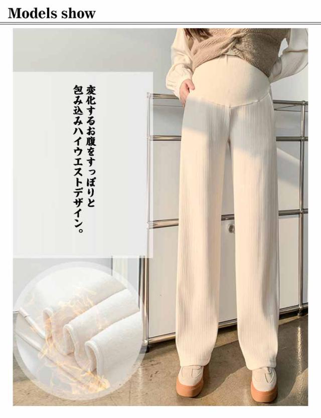 マタニティ 裏起毛 ワイドパンツ リブ パンツ 極暖 ズボン あったか 冬 大きいサイズ オフィス アジャスター 調整 妊婦 妊娠 初期 中期 後期 産後 秋冬 春 レディース 防寒 暖かい 高見え 美シルエット 脚長効果 マタニティパンツ 保温 ボトムス