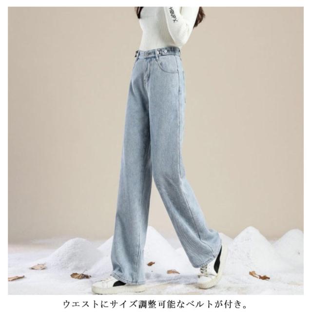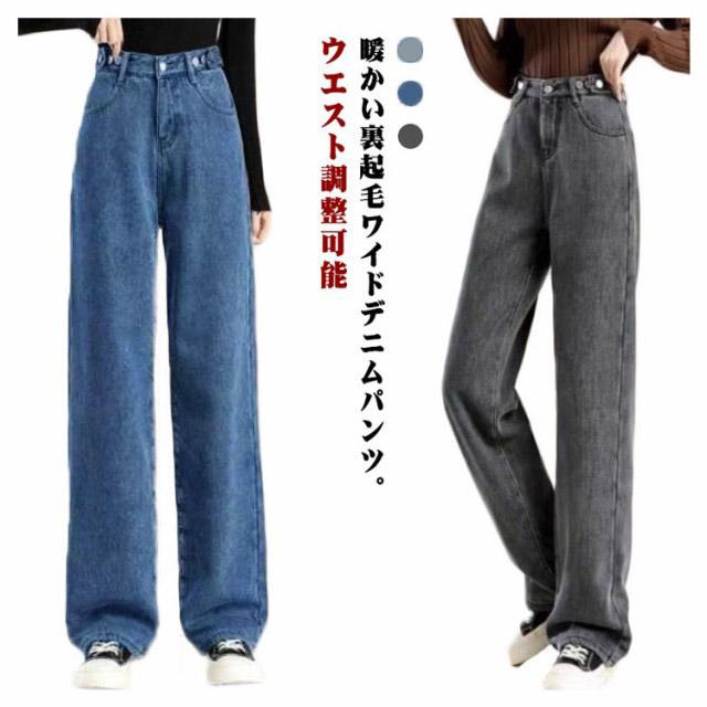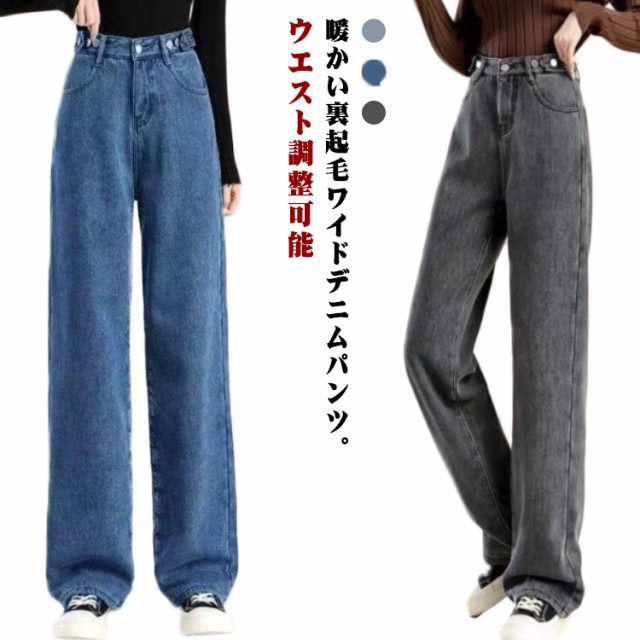 裏起毛 デニムパンツ あったかデニム パンツ ワイドパンツ レディース 秋冬 ハイウエスト ウエスト調整可能 ジーンズ 裏起毛なし デニム パンツ ロングパンツ 大きいサイズ 防寒 オフィス 通学