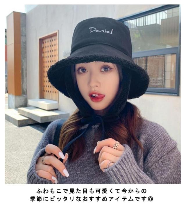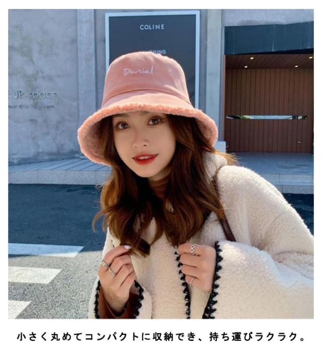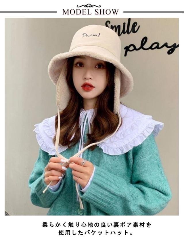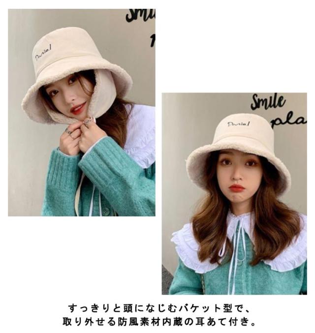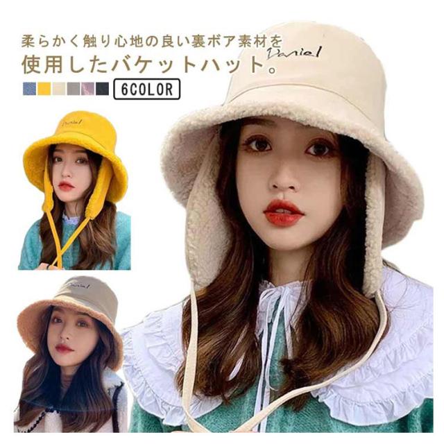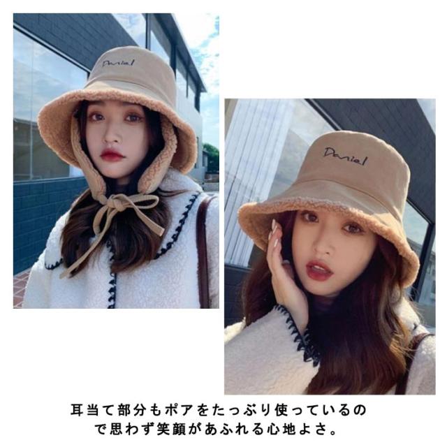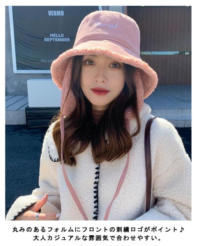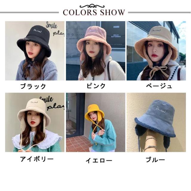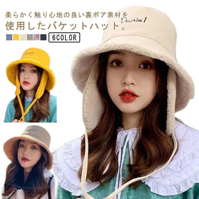 ボア バケットハット 帽子 レディース 秋 冬 バケハ 刺?ロゴ 耳あて付き 取り外せる 2WAY あったかハット もこもこ 防寒 軽い 小顔 折りたたみ 秋 冬 暖かい あったか 厚手 防寒 韓国 韓流 ブラック ピンク ベージュ アイボリー イエロー ブルー