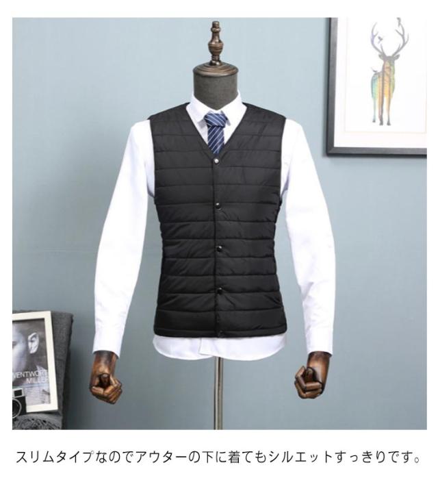 中綿ベスト メンズ インナーダウン風ベスト ビジネス スーツ 暖かい 前開きベスト ジレベスト ノースリーブ アウター 防寒 中綿ジャケット スリム 軽量 薄手 コンパクト インナー ベスト 無地 大きいサイズ ビジネス フォーマル カジュアル 秋 冬 春