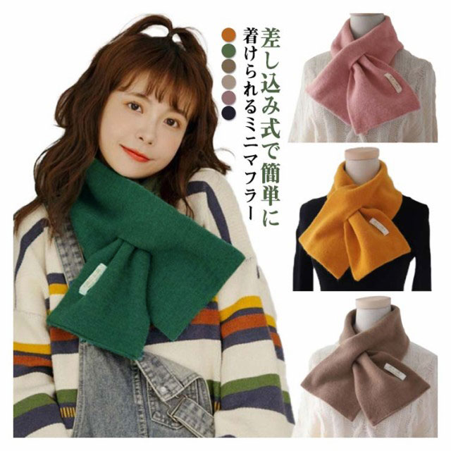 ミニマフラー マフラー ニットマフラー ネックウォーマー 差し込み クロス マフラー ミニ ニット ストール ティペット 冬 レディース メンズ キッズ 子供 スヌード 無地 可愛い おしゃれ 着脱簡単 暖か 秋冬 柔らかい 防寒 通勤 通学