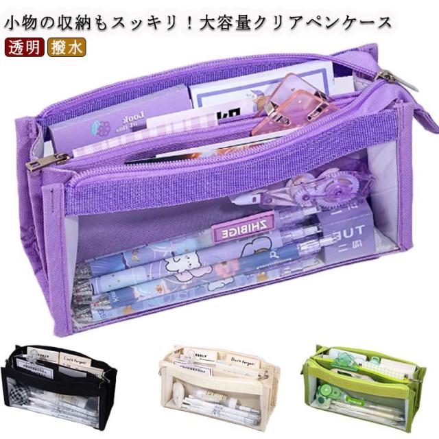 仕切り 大容量ペンケース かわいい ツールペンケース 文房具 筆箱 クリアペンケース ズック ペン入れ 透明 撥水 丈夫 収納ポーチ ふで箱 ふでばこ 大容量 透明 ファスナー シンプル 送料無料 クリスマス ギフト 誕生日 プレゼント