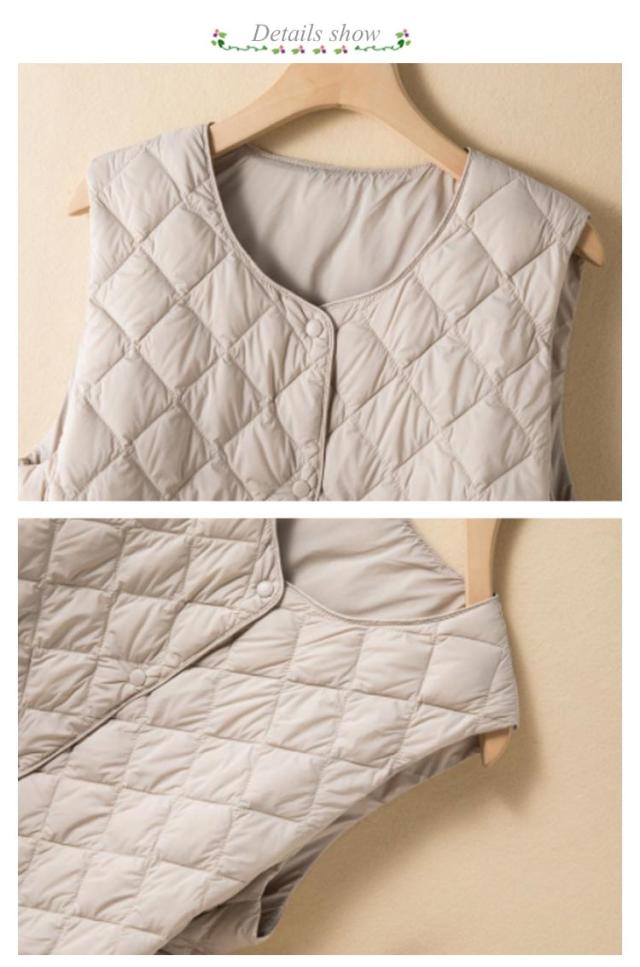 | 定番のキルティングダウンベストが新登場 ラウンドネックのデザインがシンプルでエレガントです フロントはスナップボタン仕様なので着脱も簡単です。 とても軽くて履き心地が良いです 暖かい時はセーターと合わせて、寒い時は厚手のジャケットのインナーとして着ていただけます。 | |
