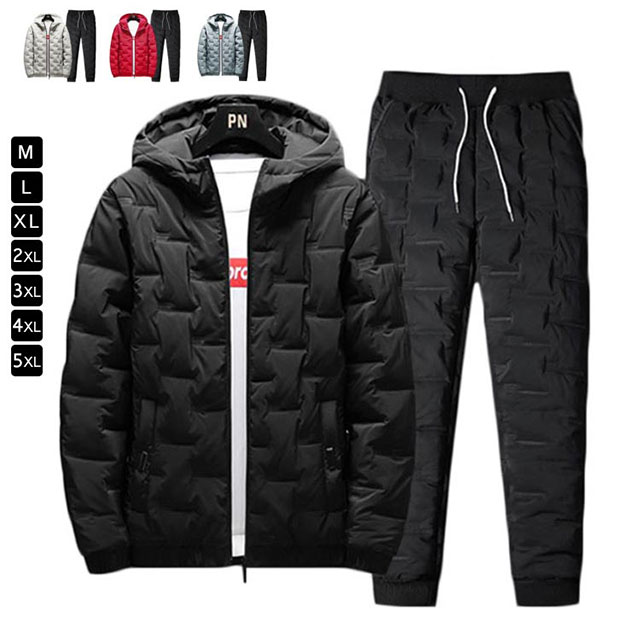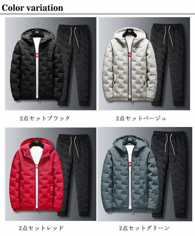 セットアップ メンズ 冬 上下セット パーカー 中綿ジャケット 厚手パンツ 無地 スポーツウェア スウェット上下セット 防寒 おしゃれ