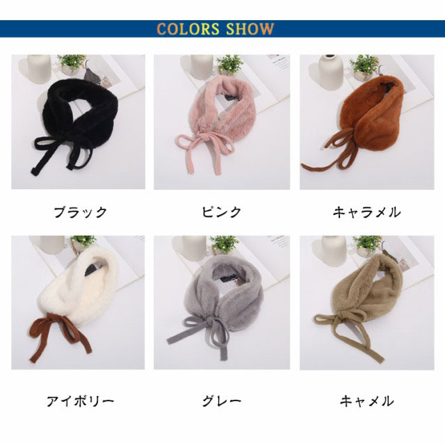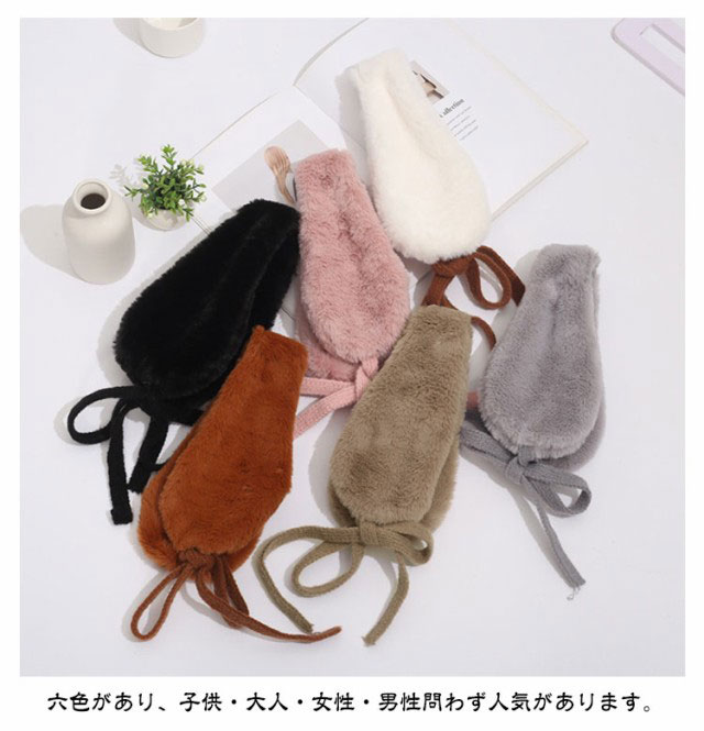 | 【2WAY 耳当て】【6color】【防寒対策】 フェイクファーの生地を使い、ふわふわと肌触りが気持ちよく、着心地抜群です。 耳当てとしても♪首に巻くと付け襟風のマフラーにも使える、冬のマストアイテム。 軽くコンパクトですからポケットやバックに収納でき、持ち運びもしやすい◎ 六色があり、子供・大人・女性・男性問わず人気があります。 | |