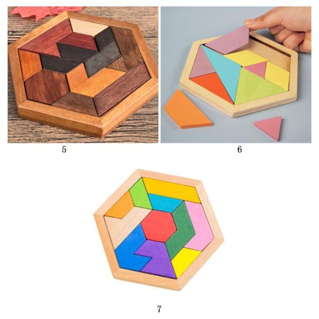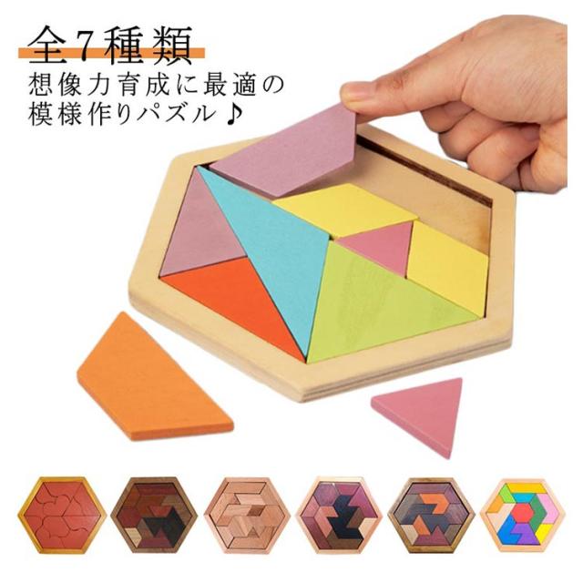 木製パズル 全7種類 パズル 木のおもちゃ ブロック 六角形 子供 教育 教材 知育玩具 形合わせ はめこみ 模様づくり 積木 ブロック 送料無料 知育玩具 学べる 3歳 4歳 5歳 6歳 キッズ クリスマス 誕生日 プレゼント 幾何