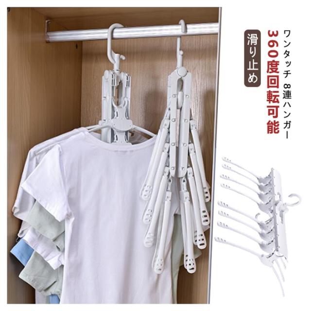 8連ハンガー ワンタッチ 折りたたみ ハンガー 収納 洗濯ハンガー 物干し 多機能 折り畳み 室内 屋外 連結 省スペース コンパクト ワンタッチハンガー 洗濯物干し 滑り止め 新生活 引っ越し 便利グッズ 送料無料