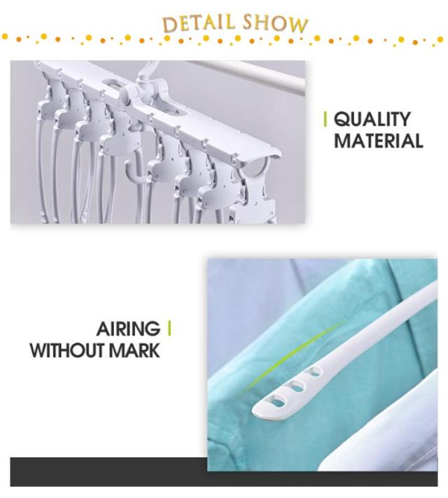 | ワンタッチ 8連ハンガー 折りたたみ・取り外し共にワンタッチで完了! 360度回転可能 日当たりによって自由に洗濯物の向きを変えることができます。 ハンガーの肩部分は幅広となっており、服が型崩れしにくい設計になっています。 | |