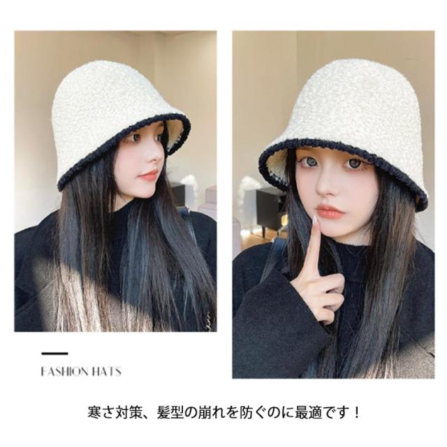 | ボア素材が秋冬らしいバケットハット。 デート、通勤、通学、旅行、キャンプなどようなアウトドアに適しています。 寒さ対策、髪型の崩れを防ぐのに最適です! 帽子のつばは顔のラインを隠して小顔にみせてくれる効果もあります。 | |