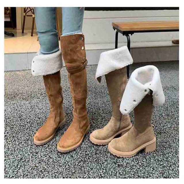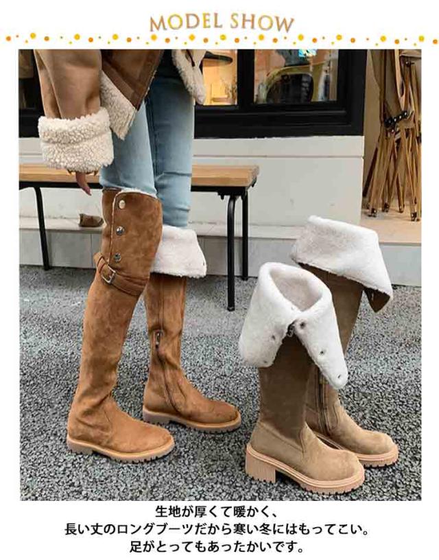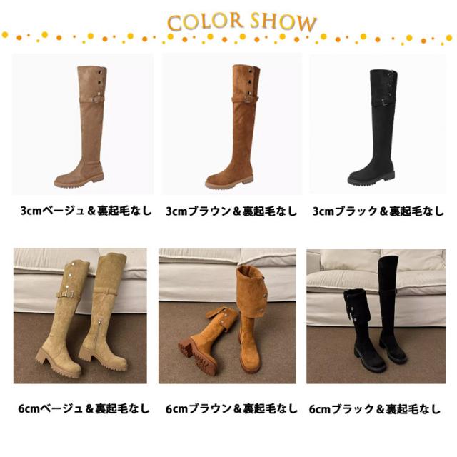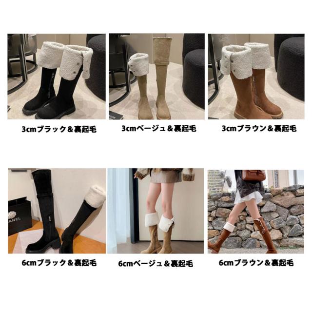 3cm/6cmヒール ニーハイブーツ ニーハイ ロングブーツ レディース 裏起毛 スエード 筒周り ブーツ 折り返し エンジニアブーツ 疲れない 大きい 筒周り 太め 大きめ 履き口 暖かい ブーツ 大きいサイズ 冬 靴 おしゃれ 歩きやすい 上品 秋 冬 韓国 送料無料