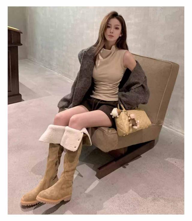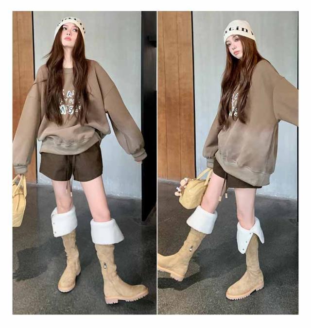 | ニーハイにもロングブーツにも出来るお得な2ウェイタイプ★安定感があって歩きやすい 生地が厚くて暖かく、長い丈のロングブーツだから寒い冬にはもってこい。足がとってもあったかいです。 つまさきの形が丸いから、指に優しい履き心地で長時間歩いても痛くなりにくい優秀ブーツです。 履き口を伸ばしても折り曲げても履くことが出来る2ウェイブーツだからボトムスの丈や、スタイリング、その日の気分に合わせてロングブーツ丈とニーハイブーツ丈を楽しむ事ができます。 | |