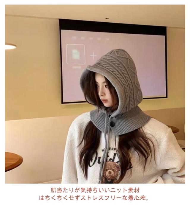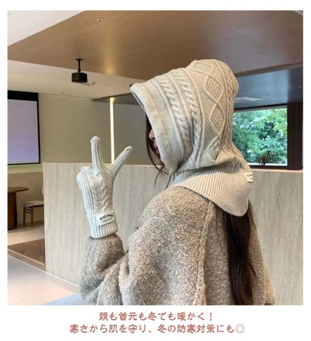 フード付き ネックウォーマー 防寒 おしゃれ ニットバラクラバ レディース ニットフーディー ニット フードウォーマー ユニセックス フード マフラー 帽子 ニットキャップ ニット帽子 バラクラバ 秋冬 付けフード 防寒 スキー 自転車 暖かい あったか 送料無料