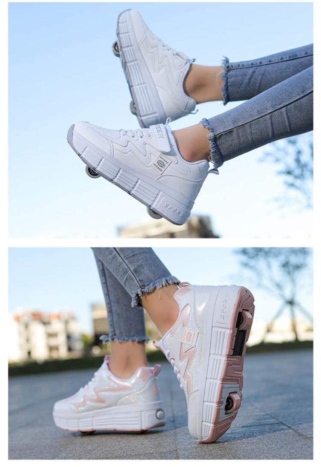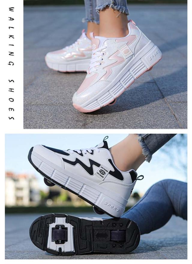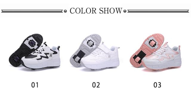 | 大人用と子供用のサイズのローラーシューズ ソールはTPR厚みのあるソール+特殊PUホイールを採用しており、耐摩耗性と滑り止め性に優れています。 取り外し可能なプーリー、2つの使用方法があります。1つ目はスニーカー状態、2つ目はローラーシューズ状態です。 便利で実用的なので、家族でまとめ買いするのもおすすめです。 | |