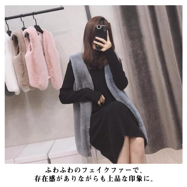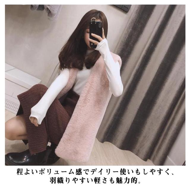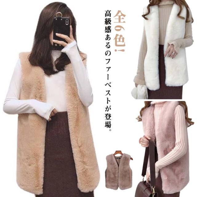 全6色!ボアベスト ノースリーブ ファーベスト レディース ベスト フェイクファー 秋冬 ノーカラー ボア ジレ コート アウター 前開き 羽織り ボアアウター エコファー もこもこ トップス 上品 ロングベスト 暖かい 冬物