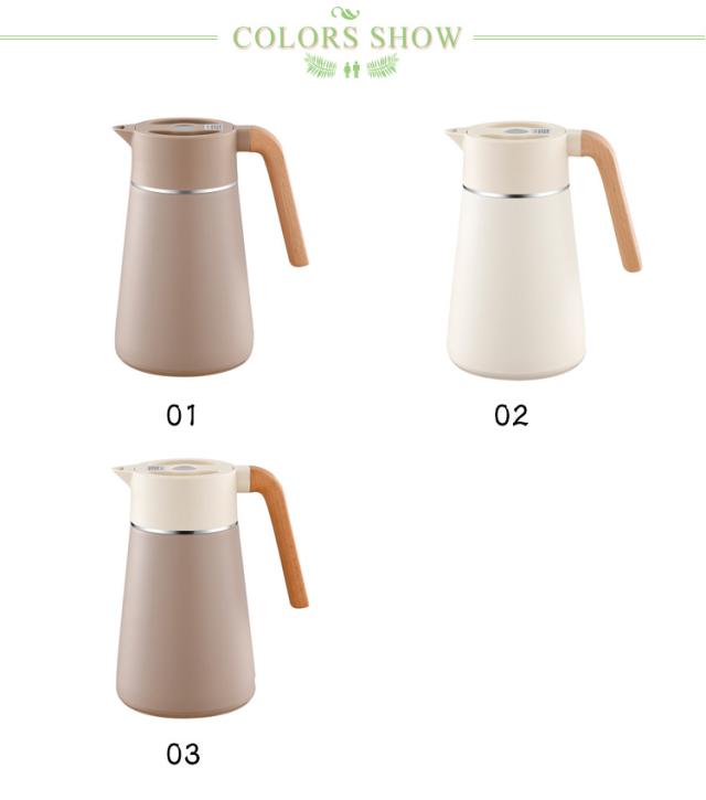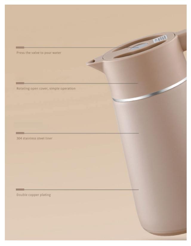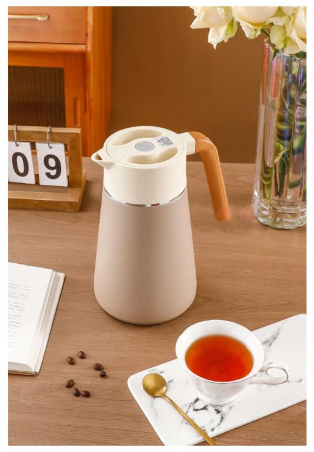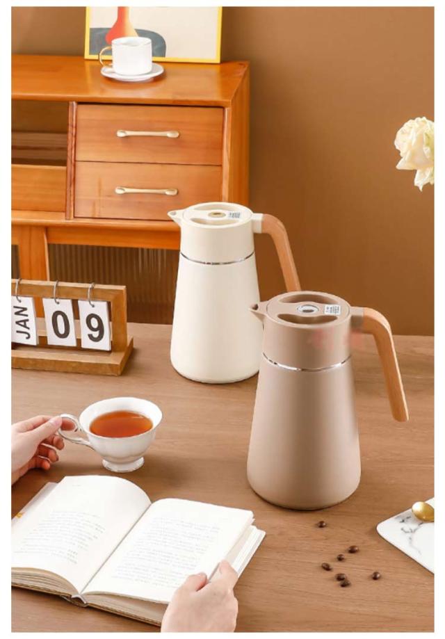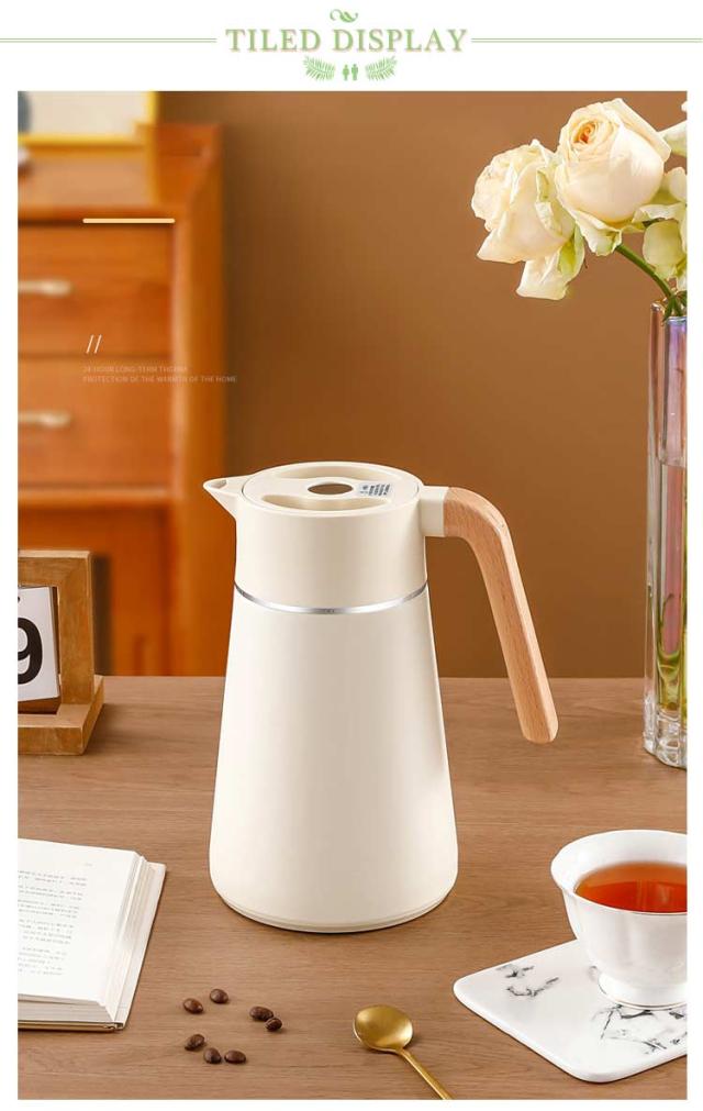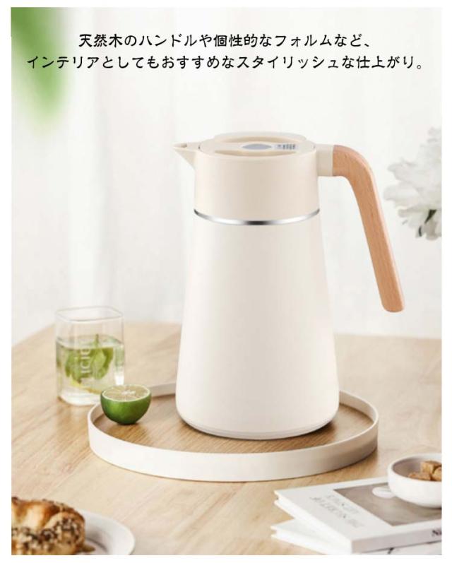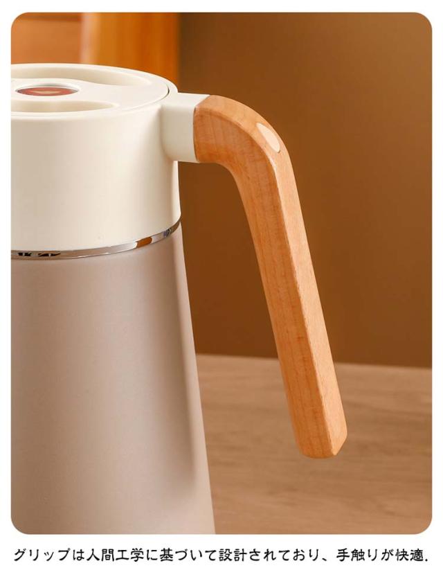 | 真空二重構造のデザイン性の高い保温ポット。 天然木のハンドルや個性的なフォルムなど、インテリアとしてもおすすめなスタイリッシュな仕上がり。 漏水防止に効果的な設計を採用している、倒れても水漏れがなく、継ぎ目を密着させることができ、どんなに揺れても水がこぼれない。 グリップは人間工学に基づいて設計されており、手触りが快適. 高品質の304ステンレス鋼材質を使用し、安定性が良く、防爆性で壊れにくく、長期にわたって温度を保持でき、防寒性能が優れている。 幅広設計で洗浄しやすくいつでも清潔にお使いいただけます。 | |