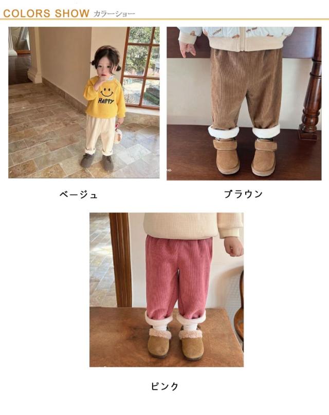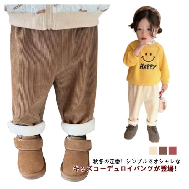 裏起毛 ロングパンツ あったか キッズ コーデュロイ 秋冬 長ズボン ジュニア ワイドパンツ 防寒 暖かい 小学生 中学生 子ども 保温 ボトムス 子供服 子ども服 厚手 ウエストゴム 可愛い ガールズ ボーイズ