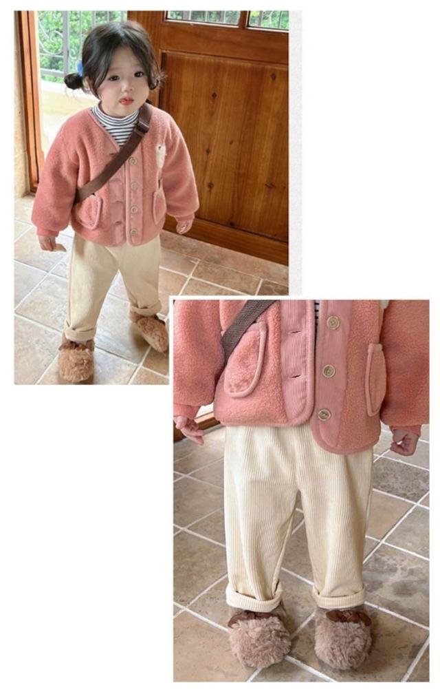 | 秋冬の定番!シンプルでオシャレなキッズコーデュロイパンツが登場! 程よい厚みのコーデュロイ素材を使用しています。 ウエストゴムで腹を締め付けないので、着心地はとっても楽チン! 足首にはゆったりとして快適な着心地。 落ち着いた3色を用意、可愛い&おしゃれなコーディネートが完成。 | |