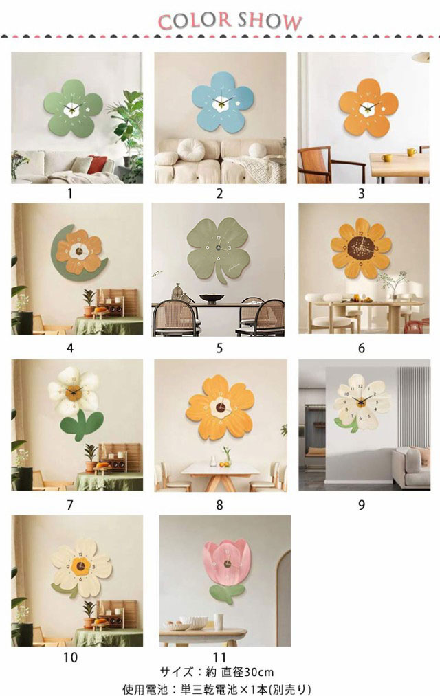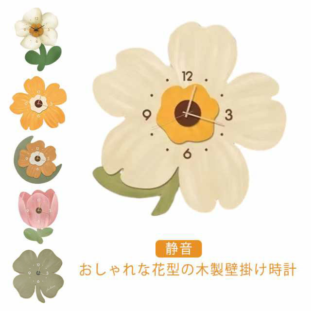 全11タイプ 壁掛け時計 木製 時計 掛け時計 壁掛時計 北欧 花型 静音 おしゃれ リビング 寝室 子供部屋 オフィス かべ掛け時計 ウォールクロック かわいい ナチュラル 見やすい 新築祝い プレゼント 新生活 送料無料
