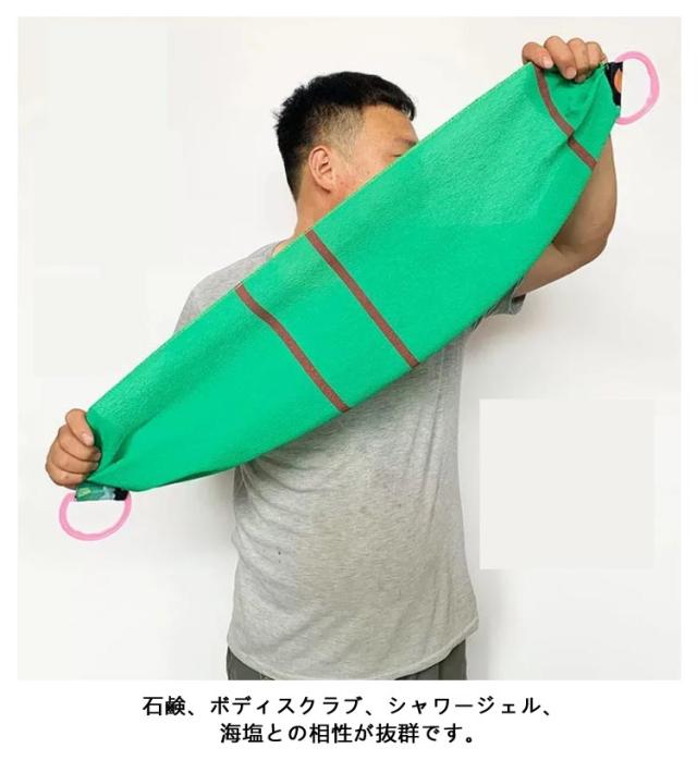 | 【背中のお肌磨き】【泡立ちの良さ】【カビが生えにくい】 2枚セット!手が届きにくい背中も洗いやすいボディタオルです。 肌触りが良く適度な刺激で毛穴の汚れや角質汚れをしっかり落とすことができます。 両端に持ち手用の輪がついていますので、背中を洗うのも楽々♪ 小さく濃密なシルク泡を作り出し、目には見えない汚れまでスッキリ落とします。 石鹸、ボディスクラブ、シャワージェル、海塩との相性が抜群です。 水切れがよく、湿気の多いお風呂場で使ってもカビが生えにくい、いつも清潔に使うことができます。 | |
