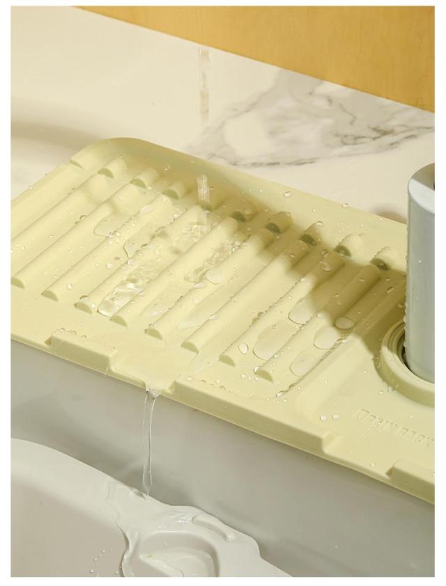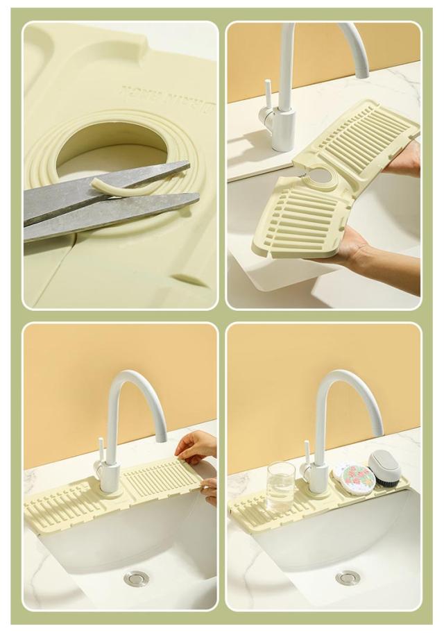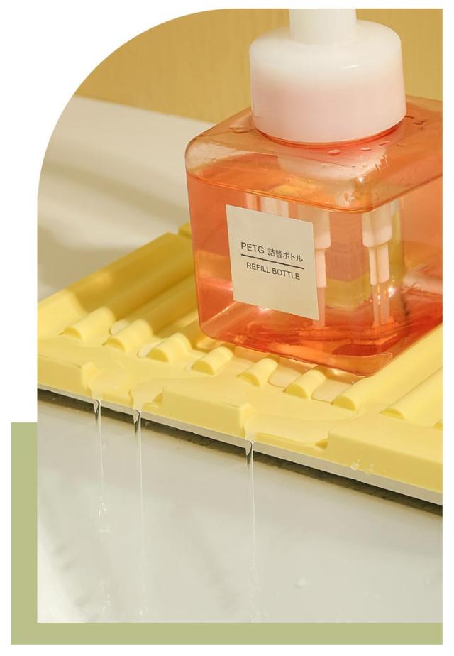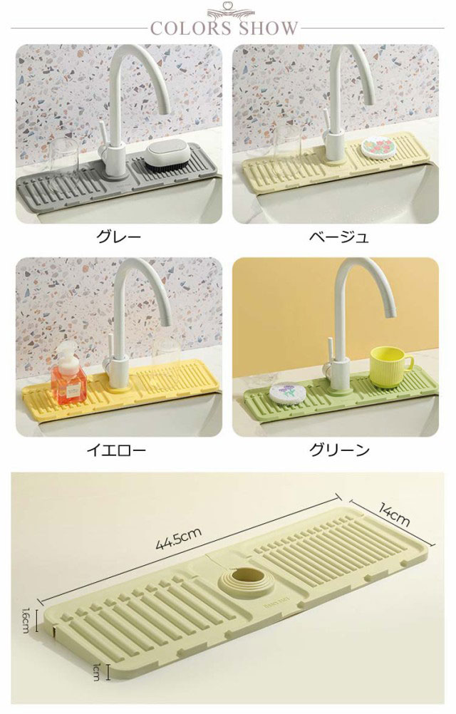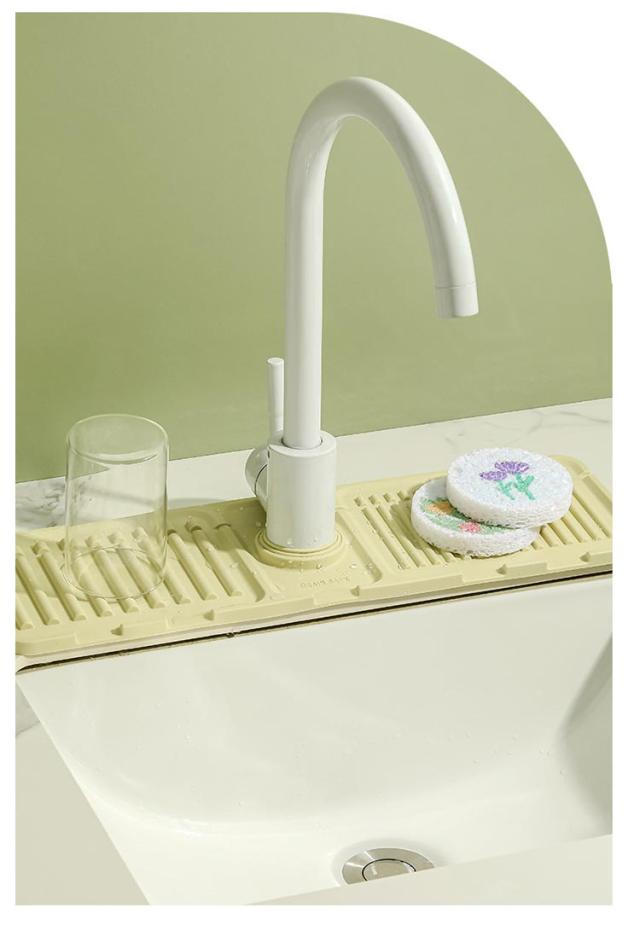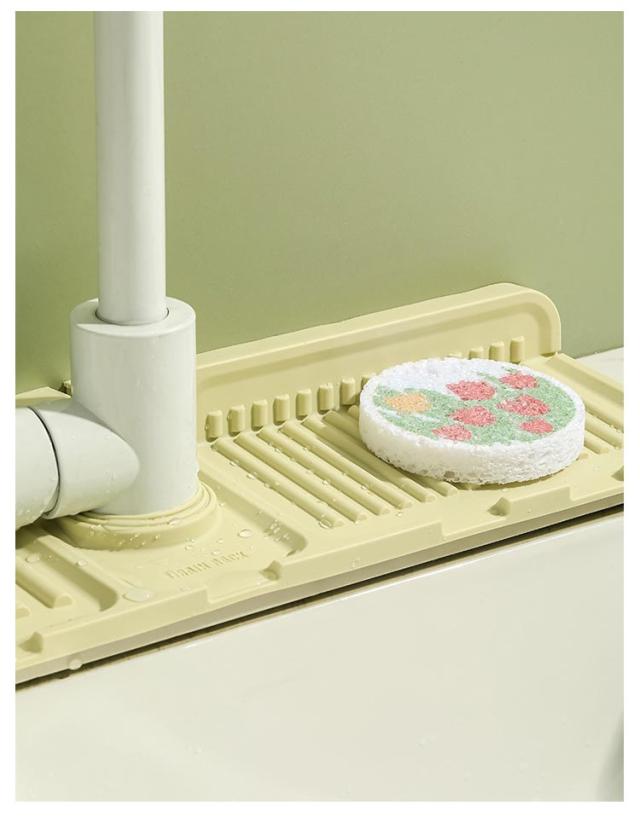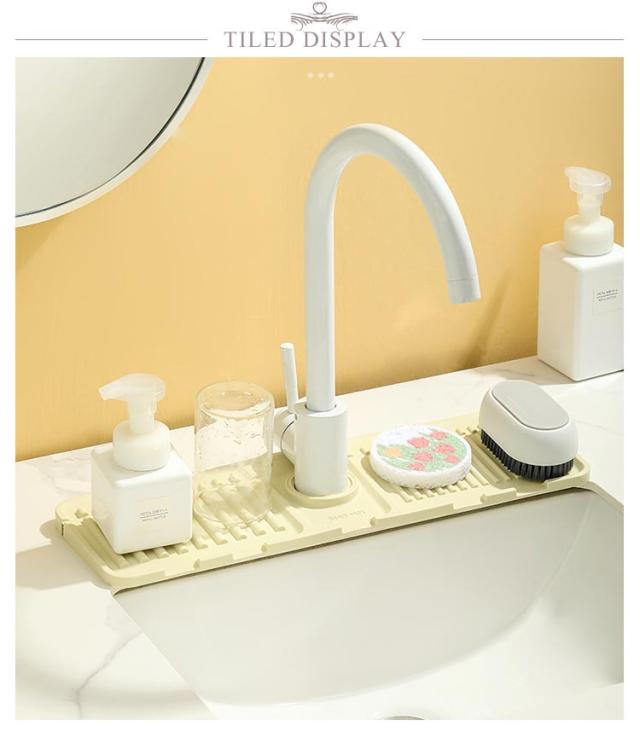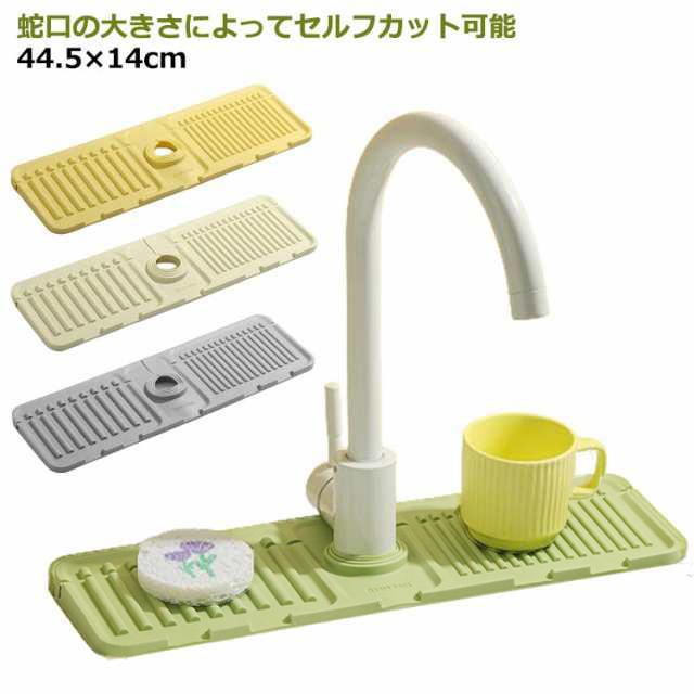 蛇口 水栓水切りマット 44.5×14.5cm スポンジ置き キッチン用品 折りたたみ シリコンマット 柔らかい 石鹸置き 洗面所 お手入れ簡単 錆びない 乾燥 便利グッズ 送料無料 水切りトレー 雑貨 台所用品 送料無料