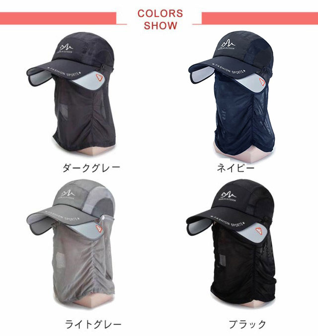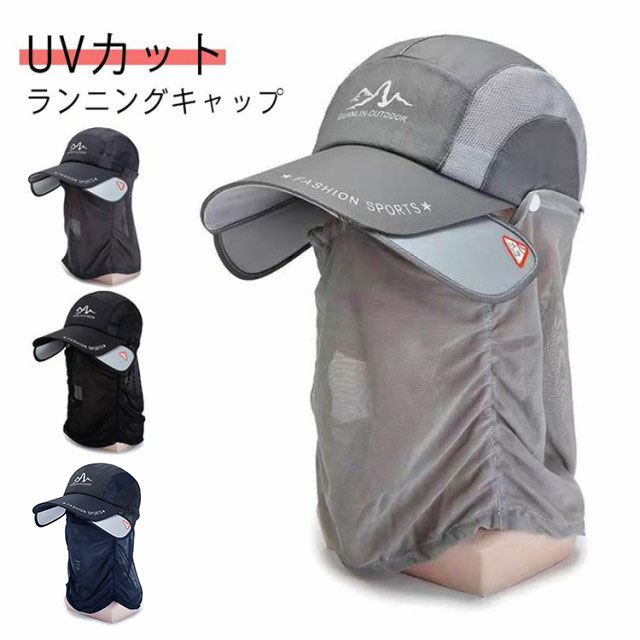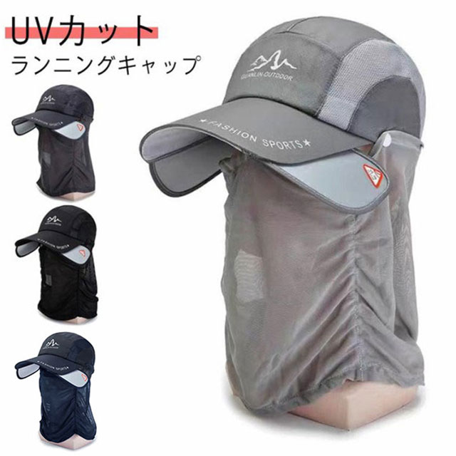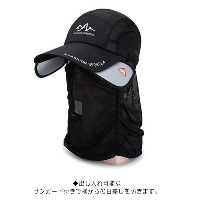 送料無料 ランニングキャップ UVカット サンガード付き フェイスカバー フェイスガード スポーツキャップ メッシュ 深め 帽子 速乾 通気性 登山 釣り メンズ 夜間 反射材 熱中症対策 花粉対策 レディース ガーデニング ライディング