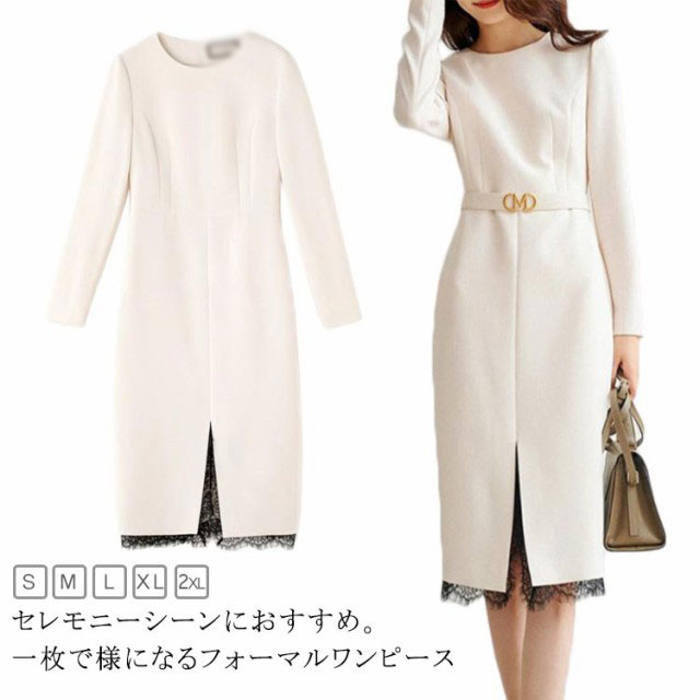 ワンピーススーツ レディース 入学式 ママスーツ フォーマルスーツ 卒業式 卒園式 入園式 結婚式 長袖 裾レース 切り替え スリット入り 体型カバー 学校 お宮参り 七五三 大人 上品 エレガント フォーマル 通勤 ビジネス 春 秋 冬