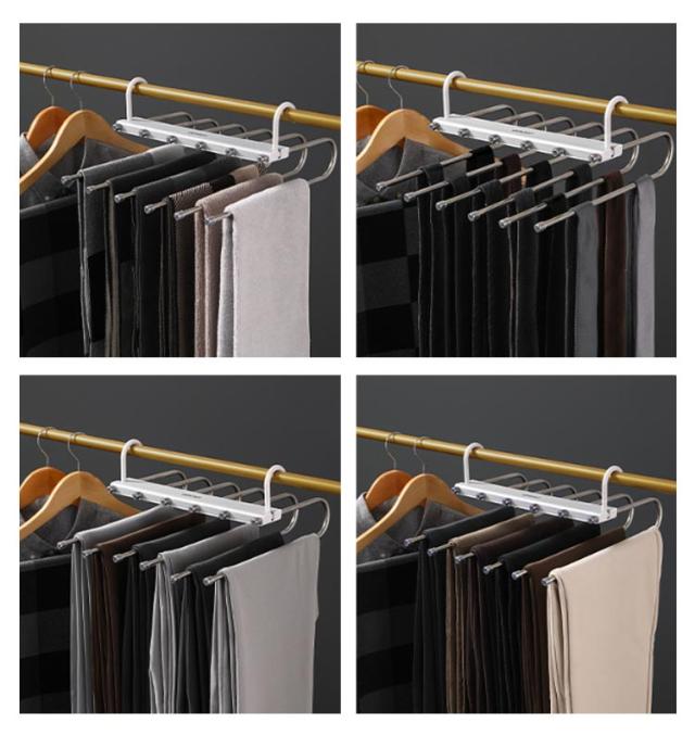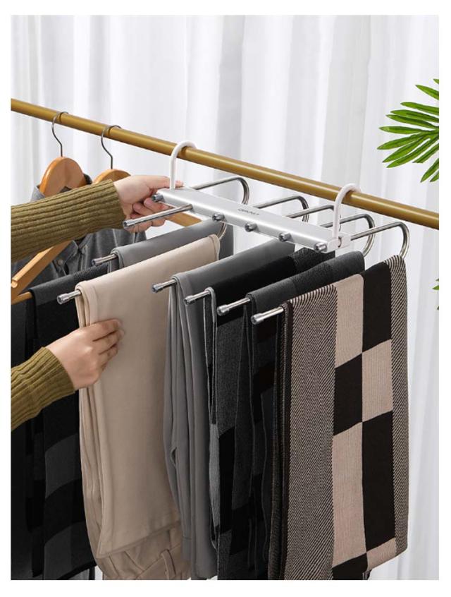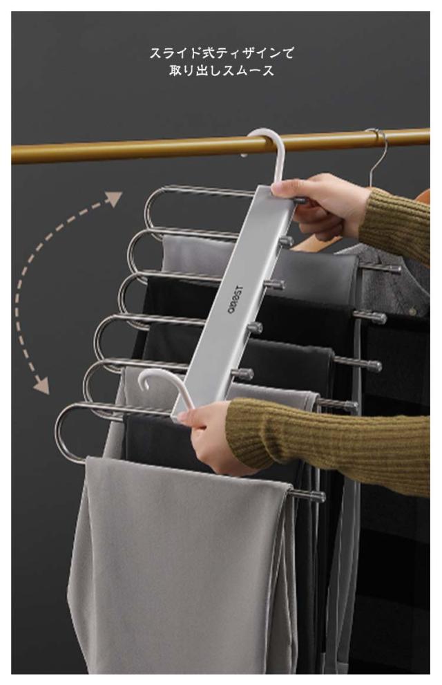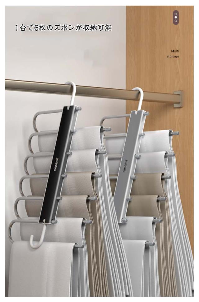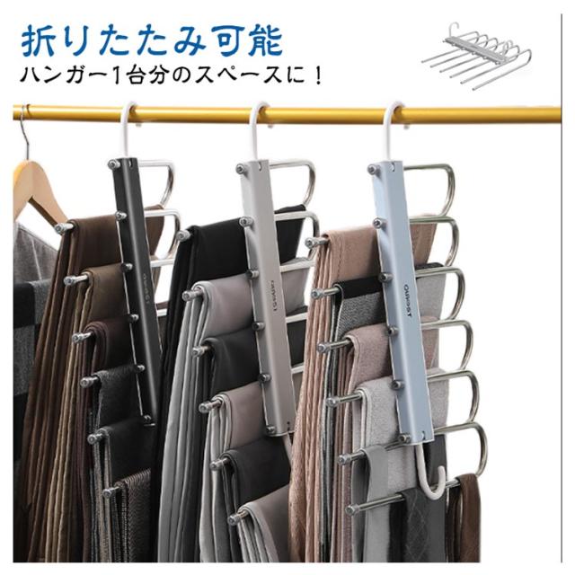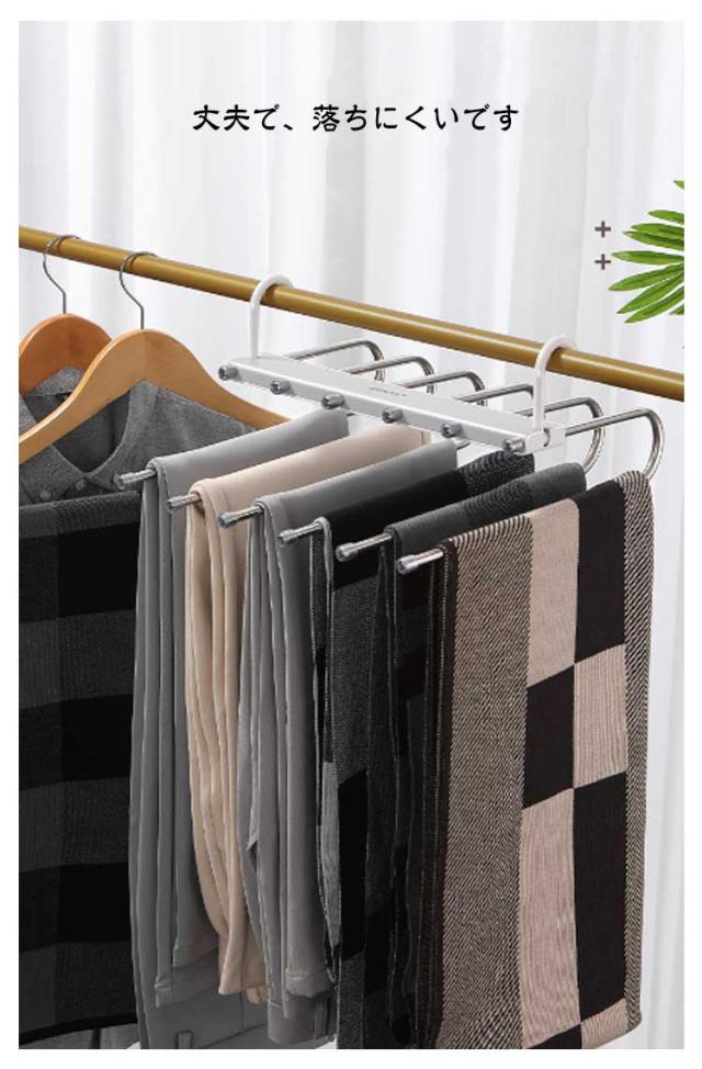| 折りたたみ可能 ハンガー1台分のスペースに! 1台で6枚のズボンが収納可能 丈夫で、落ちにくいです スライド式ティザインで取り出しスムース | |