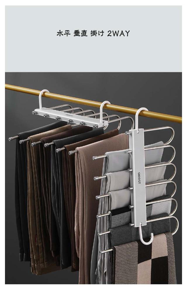 ズボン ハンガー 6連 ステンレスハンガー スラックスハンガー ズボンハンガー 水平 垂直 掛け 2WAY パンツ ハンガー スラックス ハンガー 収納 縦型収納 省スペース 折り畳みズボンハンガー スラックス ハンガー 掛け すべらない