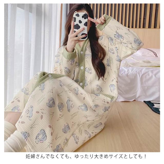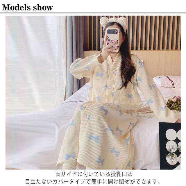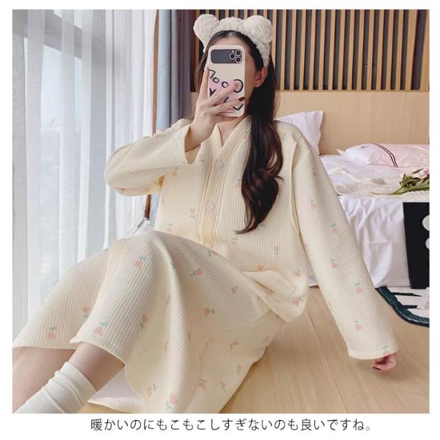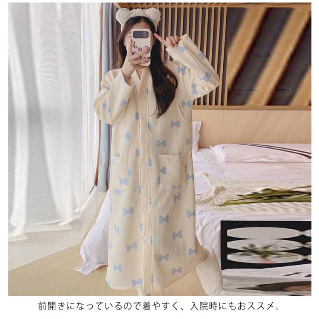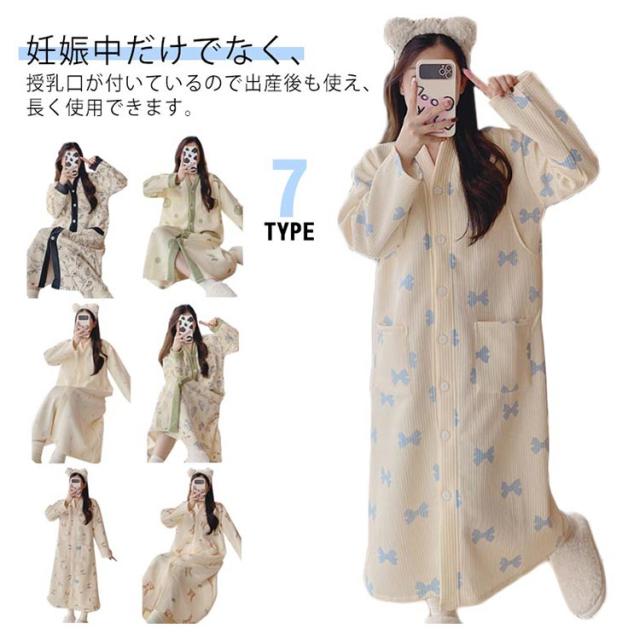 ワンピース 前開き ルームウェア マタニティ パジャマ 可愛い 肌に優しい あったか 冬 マタニティ 暖かい 冬用 大きいサイズ 授乳服 産後 ロング パジャマ 厚手 入院準備 産前 長袖 秋 シンプル 春 妊婦 女性 出産祝い ギフト おしゃれ