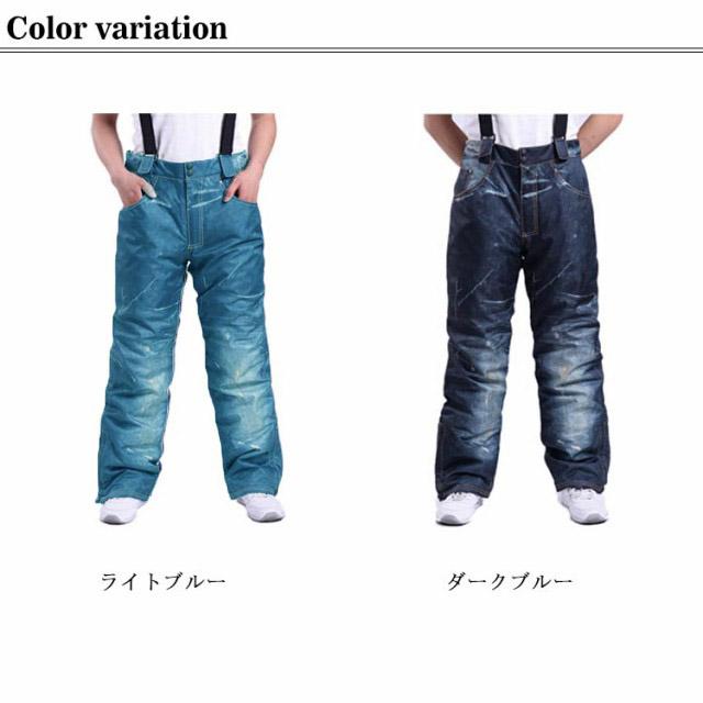 スキーウェア パンツ メンズ レディース スノーボードウェア ビブパンツ デニム風 ロングパンツ デニムパンツ ジーンズ スノボウェア ボードウェア ボトムス 撥水 サロペット 防寒 透湿防水 中綿入り 雪遊び 外遊び オーバーオール 男性 送料無料 S-3XL