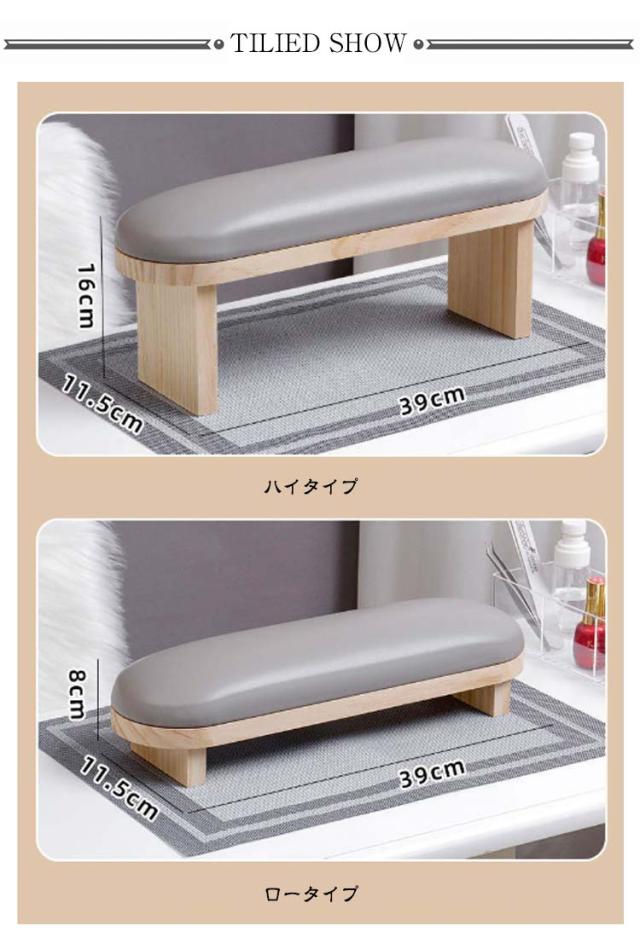 | プロ仕様のアームレストで、リラックスで施術ができる♪ 弾力のあるクッションで手や腕の負担を軽減しながらネイルが楽しめる♪ 長時間の施術でお客様が疲れない、そして何よりネイリストが施術しやすいのが特長のネイル用のアームレスト。 計算された設計で腕を長時間置いても疲れにくく、沈み込まない絶妙なクッション性が魅力のネイル枕。 ハイタイプはライトを収納することができるので、デスクのスペースを有効活用するだけでなく、施術の効率も上がります。 レスト部は高級感あるPUレザーを採用し、柔らかく快適で、拭くだけで綺麗に保つことができるハンドピロー。サイズ感もちょうどいいためサロンワークで大活躍! 丸みを帯びたデザイン、腕を載せやすく、不意にぶつかっても怪我することありません。 台部分は温もりのある天然木を採用し、ナチュラルで高級感のあるクッションタイプのネイルアームレスト、ネイルする際にかかせないグッズです。 | |
