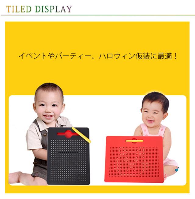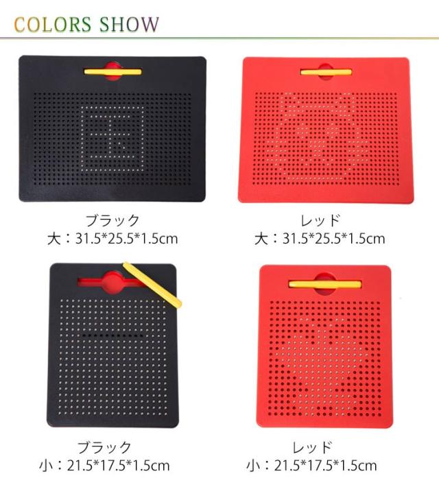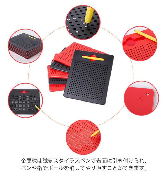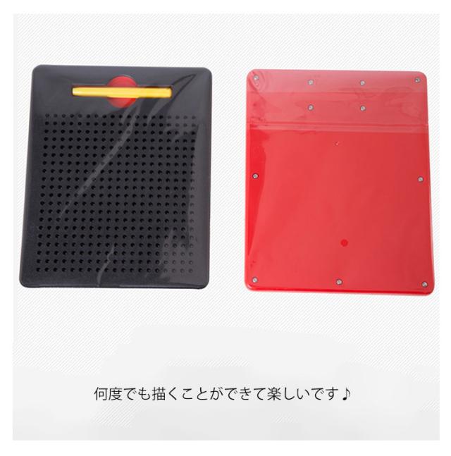 | 子どもの知育玩具男の子と女の子を問わず、だれでも簡単におえがきを楽しめる子供のおもちゃ。 子供たちは想像力を使って絵、形、文字、数字を描くことができます! プラスティック製のボードに、磁石内蔵ペンで遊びます。 付属のマグネットペンでボードをなぞって中のボール(鉄球)を引き上げ、字や形、絵を描いてみよう! 金属球は磁気スタイラスペンで表面に引き付けられ、ペンや指でボールを消してやり直すことができます。 大人も子供も楽しく遊べる知育玩具のマグネットタブレットです。 周りやお洋服を汚さずに遊べるので、安心です◎ 何度でも描くことができて楽しいです♪ お誕生日プレゼントやクリスマスプレゼント、入学祝い・卒業祝いにも最適です。 | |