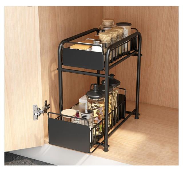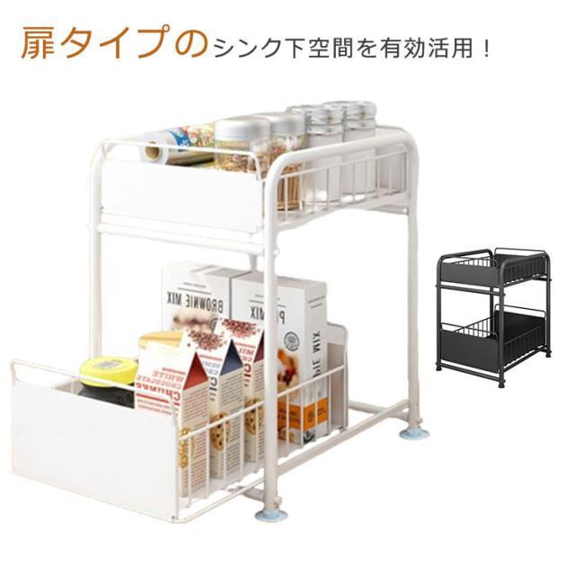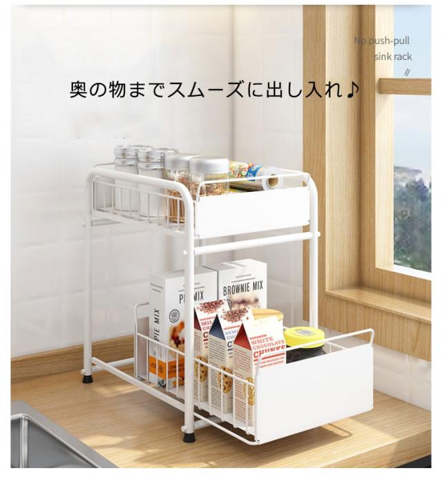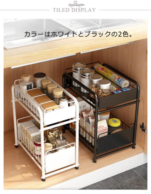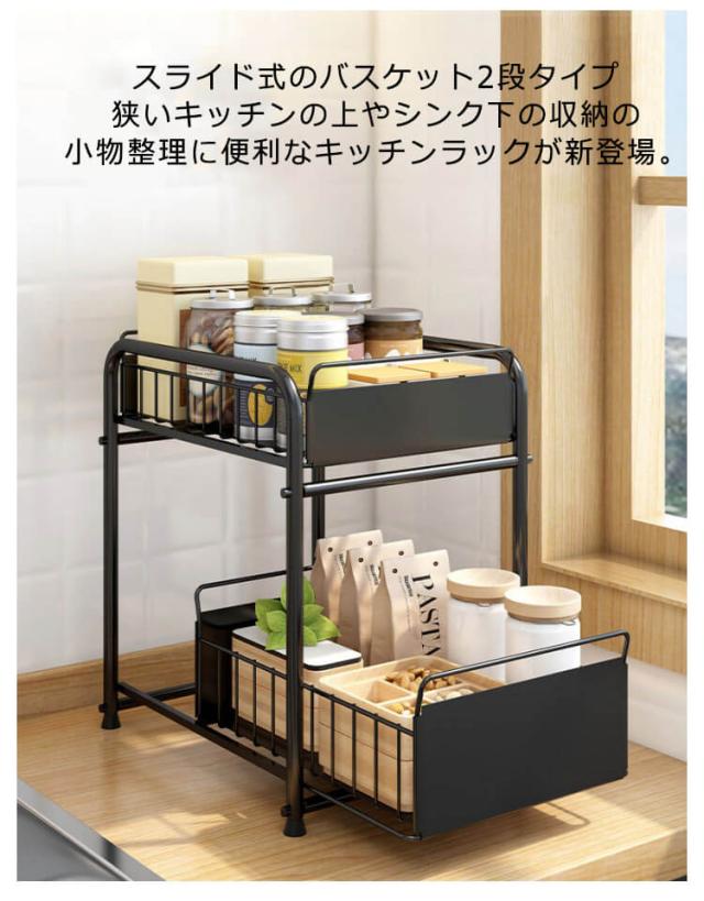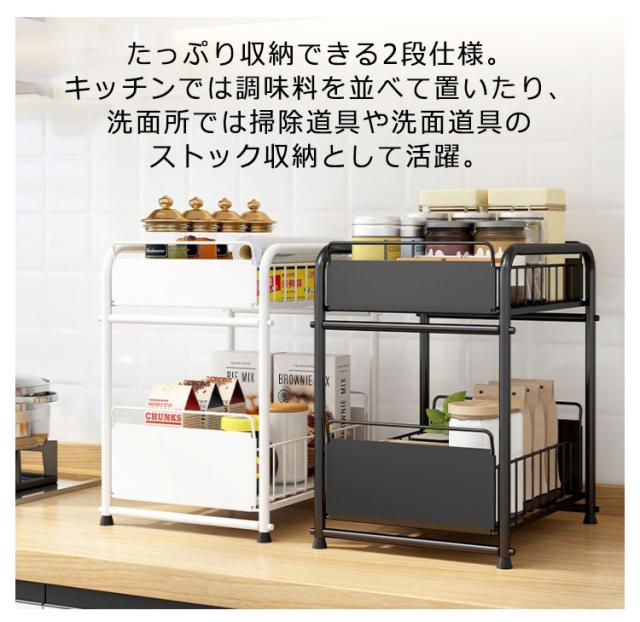 シンク下収納 スライド シンク下収納ラック 収納棚 引き出し スリム 隙間収納 洗面台下 洗面下収納 キッチン下収納 2段 調味料ラック 二段 棚 キッチン小物 食器 調理器具 シンク下収納ワゴン