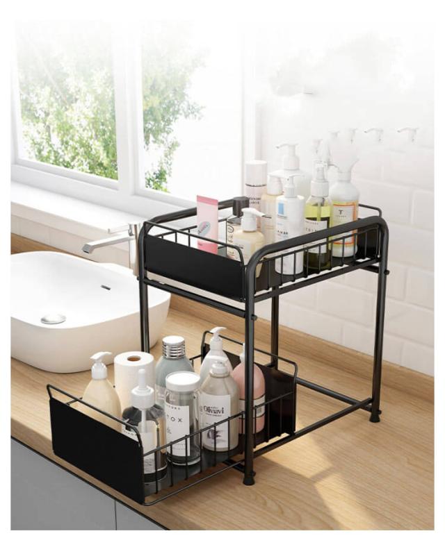 | ・扉タイプのシンク下空間を有効活用!スライド式のバスケット2段タイプ ・狭いキッチンの上やシンク下の収納の小物整理に便利なキッチンラックが新登場。 ・奥の物までスムーズに出し入れ♪ ・たっぷり収納できる2段仕様。キッチンでは調味料を並べて置いたり、洗面所では掃除道具や洗面道具のストック収納として活躍。 ・カラーはホワイトとブラックの2色。 | |