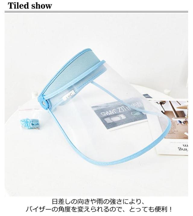 サンバイザー つば広タイプ クリアサンバイザー 梅雨 雨の日 雨用バイザー 透明タイプ 帽子 男女共用 自転車用 フェイスカバー 顔が濡れない 雨用バイザー 透明タイプ 帽子 レディース メンズ UVカット あご紐付き 軽量 可動式 角度調節