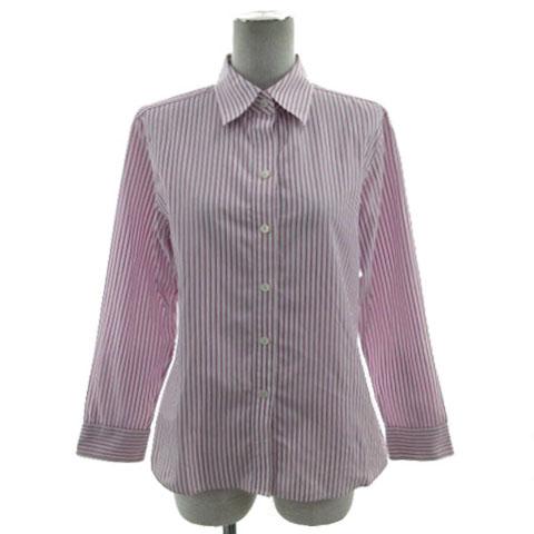 【中古】ニューヨーカー NEWYORKER シャツ 長袖 コットン ストライプ ホワイト 白 ピンク ピンクパープル 13号(72)