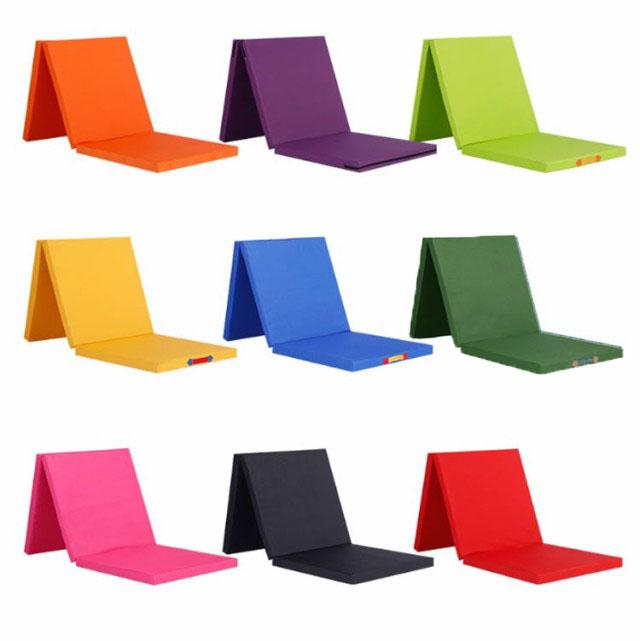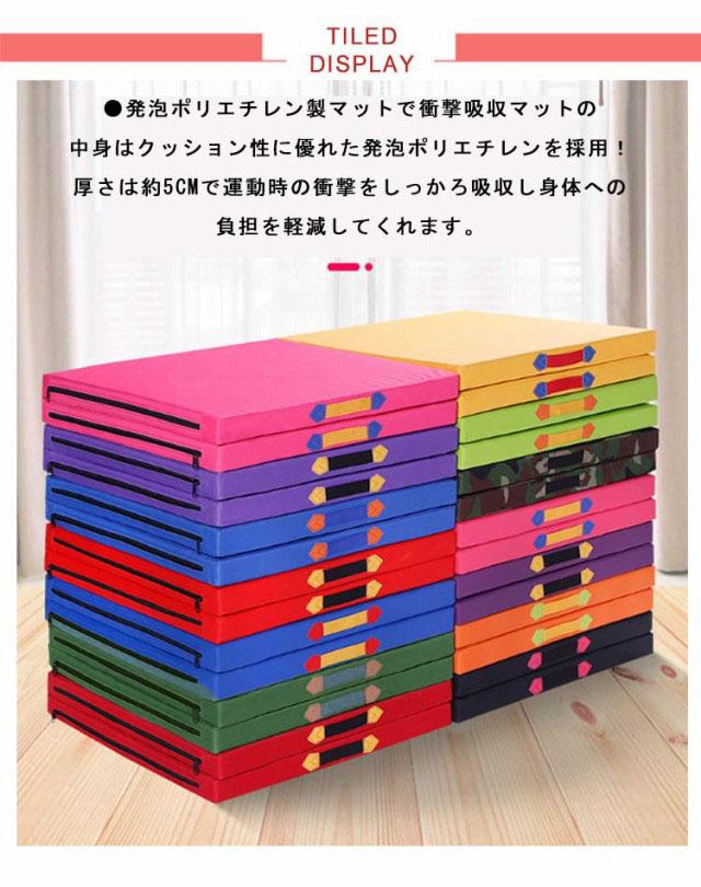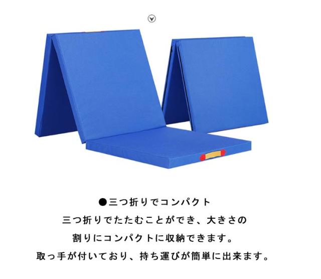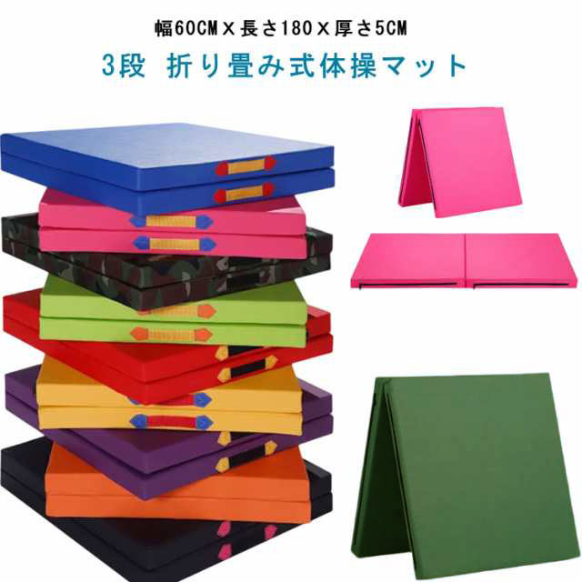 | 幅60cmx長さ180x厚さ5cm 3段 折り畳み式体操マット ●発泡ポリエチレン製マットで衝撃吸収 マットの中身はクッション性に優れた発泡ポリエチレンを採用!厚さは約5cmで運動時の衝撃をしっかろ吸収し身体への負担を軽減してくれます。 ●PVCレザー生地のカバーでお手入れ簡単 PVCレザーの防水生地だから汗をかいても水をこぼしても乾いたタオルでサッと拭くだけで簡単きれい! ●極厚5cmだから防音性抜群! 厚さは約5cmあるため衝撃吸収はもちろん、運動時の騒音を軽減! ●三つ折りでコンパクト 三つ折りでたたむことができ、大きさの割りにコンパクトに収納できます。 取っ手が付いており、持ち運びが簡単に出来ます。 ●さまざまな用途に対応 ストレッチ、全身運動、ダンス、ヨガ、器械体操、柔軟体操、武道、ある程度負荷の掛かったトレーニングに。 また、運動だけでなくお子様用のプレイマットやお昼寝マットとしてもご使用いただけます。 さらに車中泊やアウトドア、キャンプ、災害時の避難場所等でも活躍します。 | |