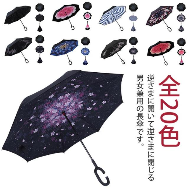 全20色 逆さ傘 長傘 逆折り式傘 長傘 逆転傘 UVカット 晴雨兼用 レディース メンズ C型 耐風傘 撥水加工 ビジネス用 車用 自立式 二重傘 撥水 通学 通勤 大きい 軽量 プレゼント