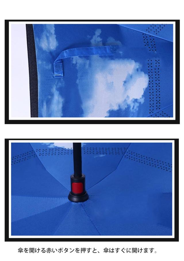 | 逆さまに開いて逆さまに閉じる男女兼用の長傘です。 水滴が内側に収納されのため、洋服や荷物が濡れることなくて周りの人にも迷惑なし。 2重生地で、しずくが柄に垂れるのを防ぎ、同時に紫外線からも守る。 独特なC型の取っ手は、手首にかけるとハンズフリーになり、傘をさしながら両手が使えます。 しっかりと自立するから、ちょっと両手を使いたい時や傘の置き場がないときなど、とても便利! 傘を開ける赤いボタンを押すと、傘はすぐに開けます。 骨には頑丈なガラス繊維素材を使用しており、強風にも耐えられる強度を誇ります。 十分な大型サイズとなり、友達、ご家族とも使えて、周辺すべてをお守りします。 オシャレデザインで、 ビジネス用にも、プレゼントにもOK! | |