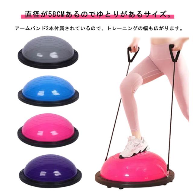 | 直径が58cmあるのでゆとりがあるサイズ。アームバンド2本付属されているので、トレーニングの幅も広がります。 【滑り止め仕様】体幹トレーニングになるバランスディスクの運動は思った以上に汗をかきやすく、汗で体が滑ってバランスディスクから落ちることもあるから、滑り止め加工され、安全に筋トレ 【素材】丈夫なABS素材の2.5mmボードサイド&6本ゴムの足座により、バランスドームが力を均等に負担し、安定のベースの内部が凹面デザインを採用し、踏み込むことによる不安定現象を避け、筋トレしっかりとしたサポート 【体幹トレーニング】あらゆるスポーツにおいて注目されている体幹トレーニング、バランストレーニングにお使いいただけます。これ1台でバランスを取りながらのスクワット、腹筋、背筋、腕立て伏せ等、トレーニングのバリエーションが広がります。マシントレーニングでは鍛えられない筋肉も鍛えられます 【トレニンーグ】3つの身体機能向上。スタビリティ(安定性)、モビリティ(可動域)、フレキシビリティ(柔軟性)。さらに、バランス能力アップ、筋力アップ、体幹強化、下半身の安定 | |