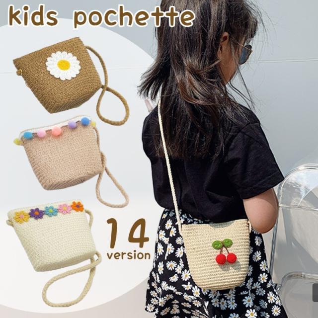 キッズ用ポシェット キッズ用ショルダーバッグ キッズ ストローバッグ かわいい 麦わら いい おしゃれ お出かけシーン シンプル