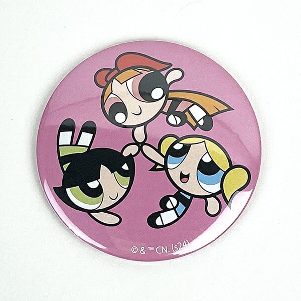 パワーパフガールズの缶バッチミラーです♪持ち運びにも便利な手のひらサイズ◎ギフトにも喜ばれるアイテムです♪