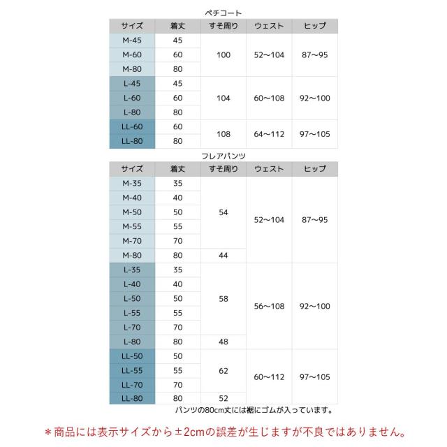 丈が選べるシンプル・ペチコート&フレアパンツ 「冷はだヴェール」